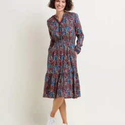 Perfect for dressing up or dressing down, our short sleeve midi dresses are super versatile and made from a gorgeous EcoVero™ fabric, which is biodegradable, sustainable, super soft and made from responsibly sourced wood (yes wood!). Featuring a flattering v-neck, elasticated waist, side leg slit and a vintage inspired cut fruit print in stunning purple colourway. Made from 100% Lenzing™ Ecovero™ Colour: Multi Side pockets Elasticated waist Side leg slits Care: Machine wash 30° Fits true to size