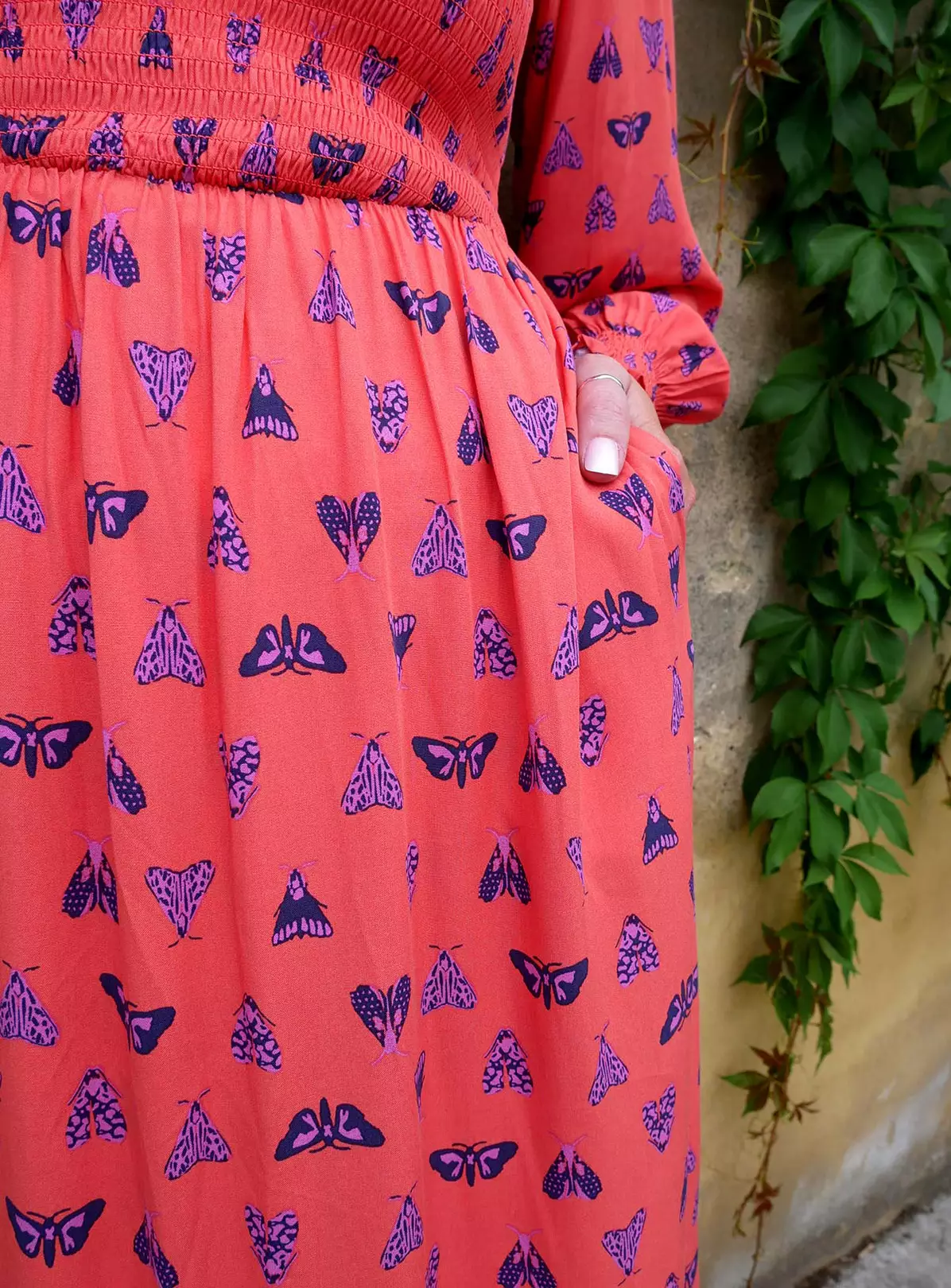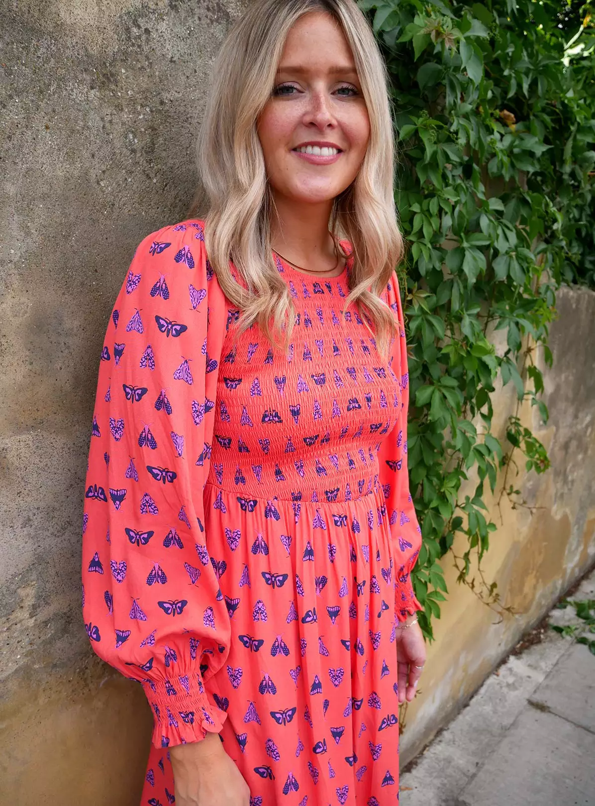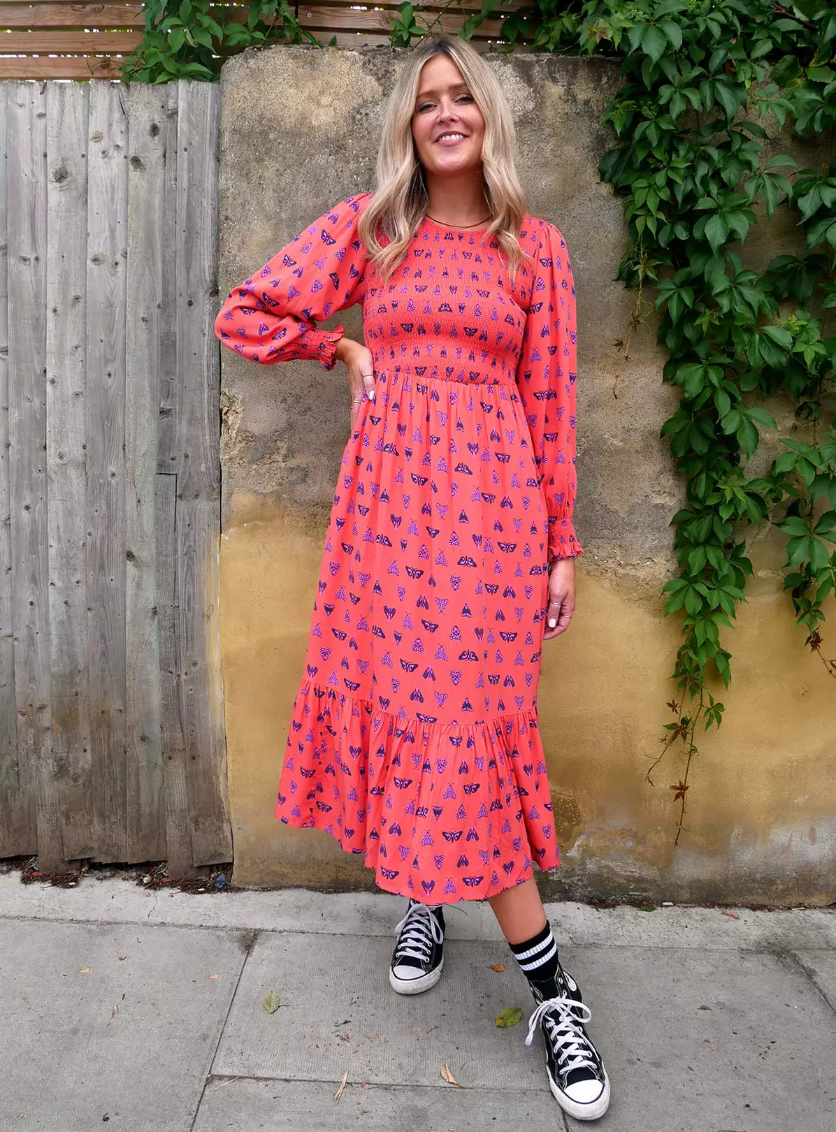 Easy to wear and effortlessly stylish, our shirred midi dress is made from a gorgeous EcoVero™ fabric, which is biodegradable, sustainable, super soft and made from responsibly sourced wood (yes wood!). Colour: CoralSide pocketsMidi lengthFits true to size