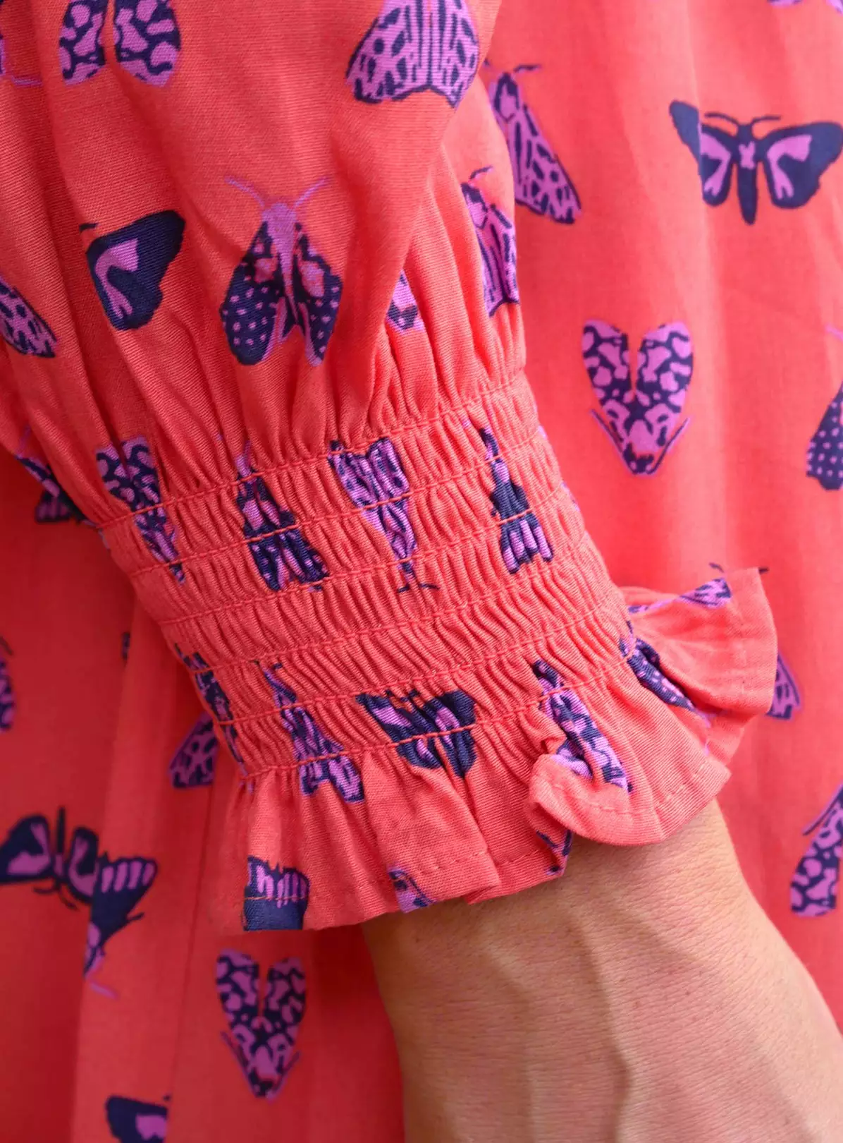 ANORAK Night Butterfly Shirred Midi Dress 10