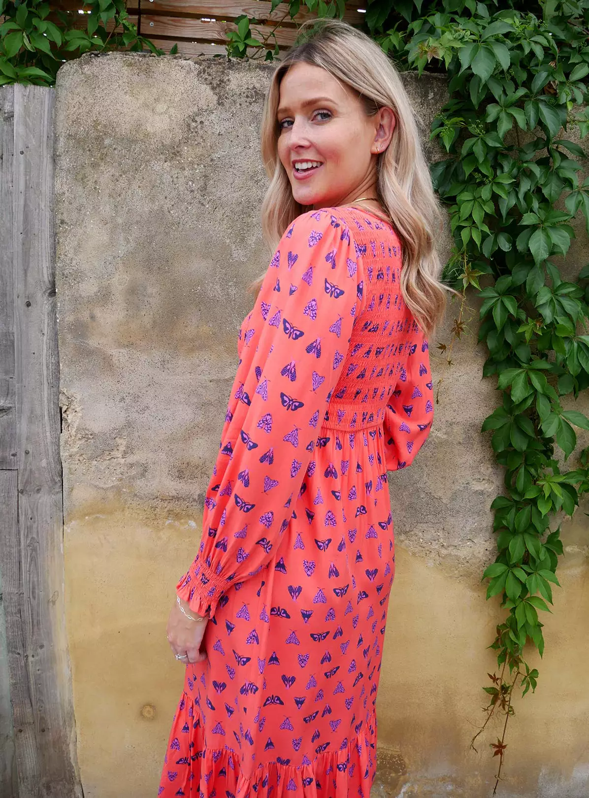 Easy to wear and effortlessly stylish, our shirred midi dress is made from a gorgeous EcoVero™ fabric, which is biodegradable, sustainable, super soft and made from responsibly sourced wood (yes wood!). Colour: CoralSide pocketsMidi lengthFits true to size