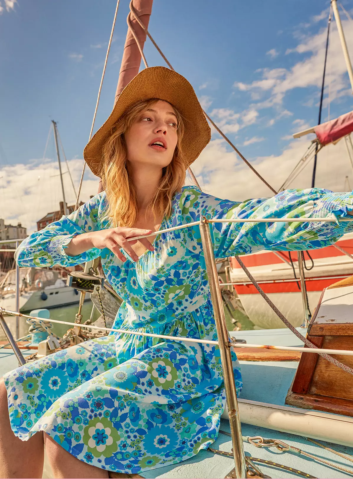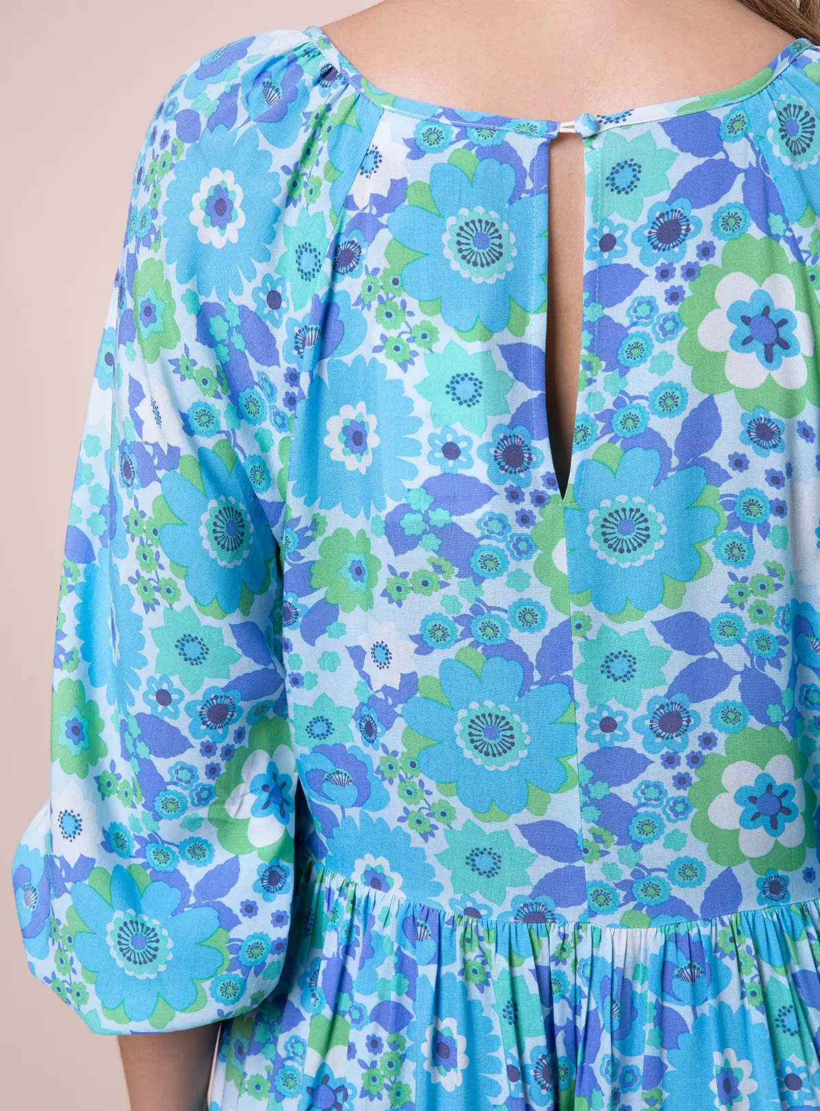 Perfect for dressing up or dressing down, our Laurie mini dresses are super versatile and made from a gorgeous EcoVero™ fabric, which is biodegradable, sustainable, super soft and made from responsibly sourced wood (yes wood!). Featuring a flattering v-neck, flowy shape, shirred cuff detailing and a vintage inspired nostalgic flower print in sophisticated pale blue colourway. Made from 100% Lenzing™ Ecovero™ Colour: Multi / pale blue Side pockets Shirred cuff detailing Mini length Care: Machine wash 30° Fits true to size