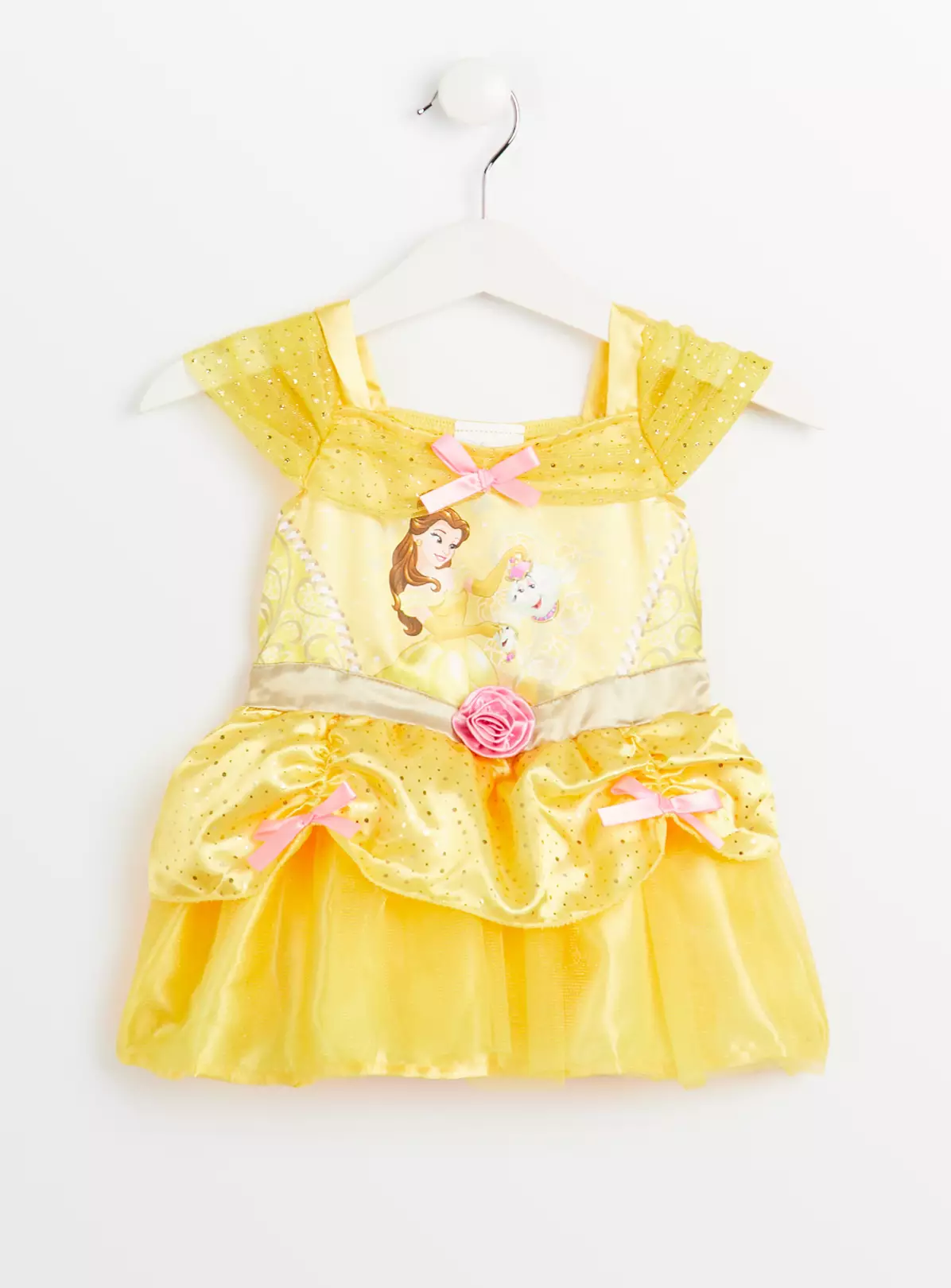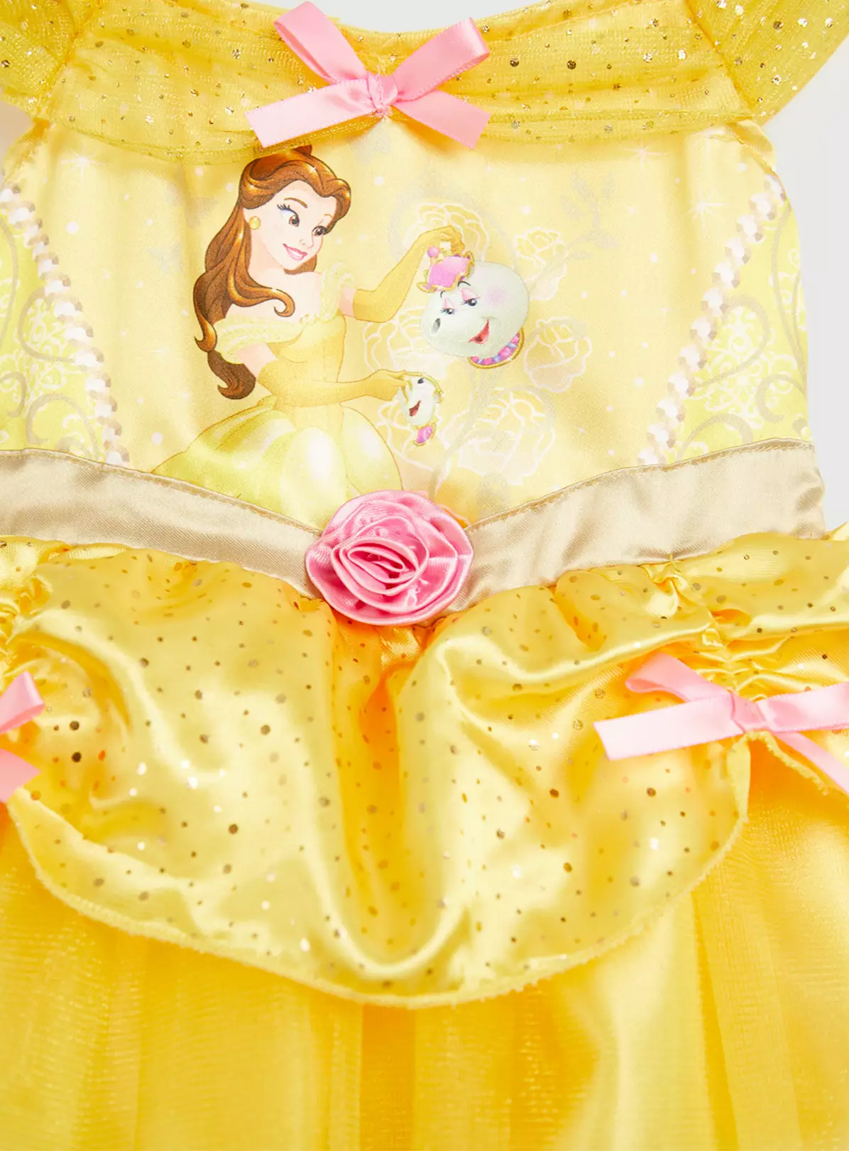 Know a little one who can’t get enough of Beauty and the Beast? Put a smile on their face with this beautiful yellow dress. Perfect for when they want to dress up as Princess Belle, it comes with glittering gold foil print, pink bow details, tulle layers galore and a graphic of Belle on the bodice.
