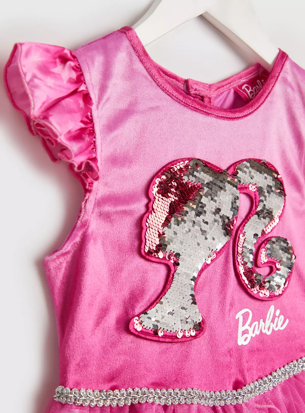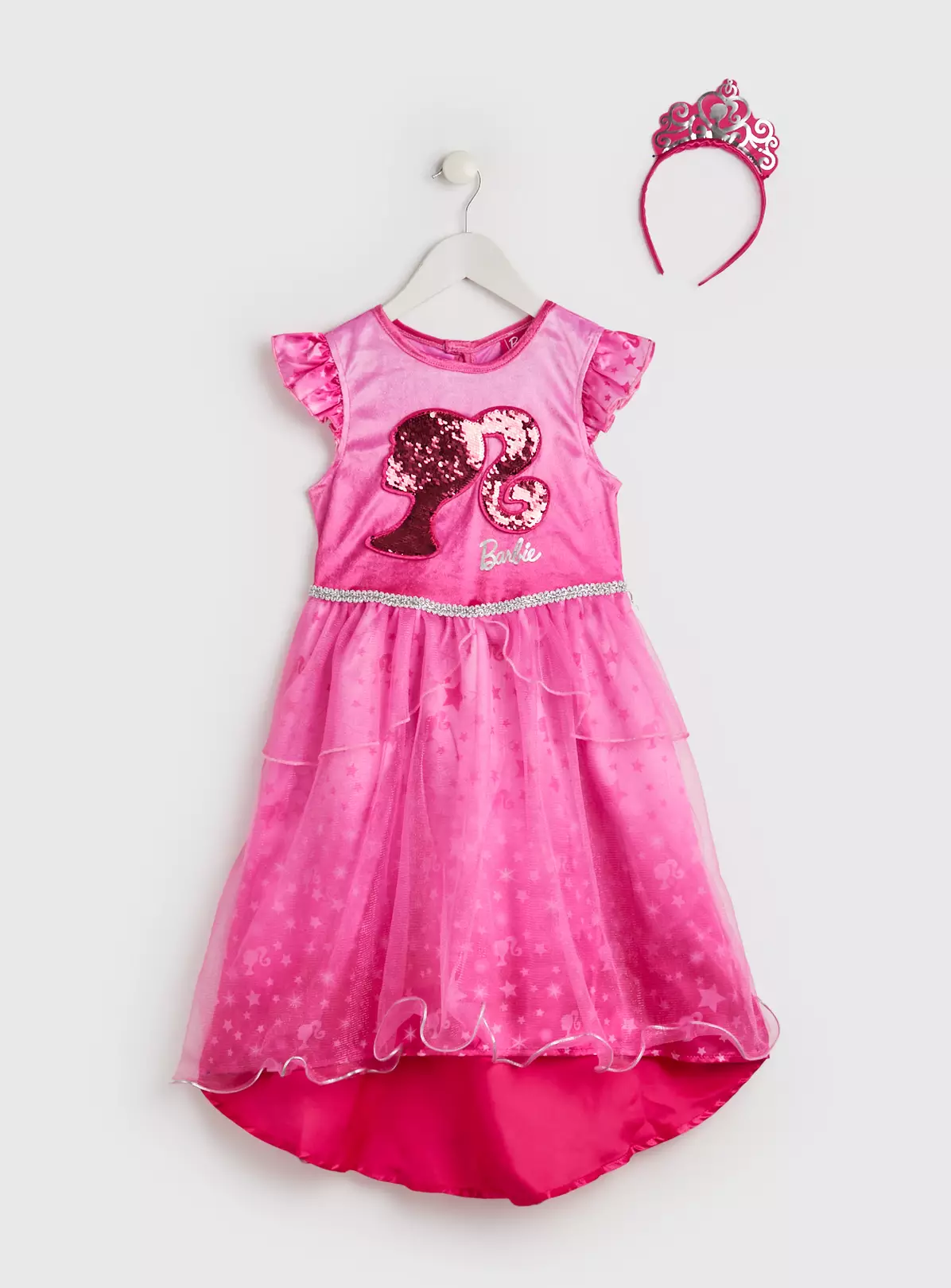 They’ll be living their best Barbie life in our fabulous pink dress and tiara set. Featuring a large sequinned Barbie detail to the front of the velour bodice and a pretty tulle overlay to the skirt, top it off with the pretty tiara and they won’t want to take this off!