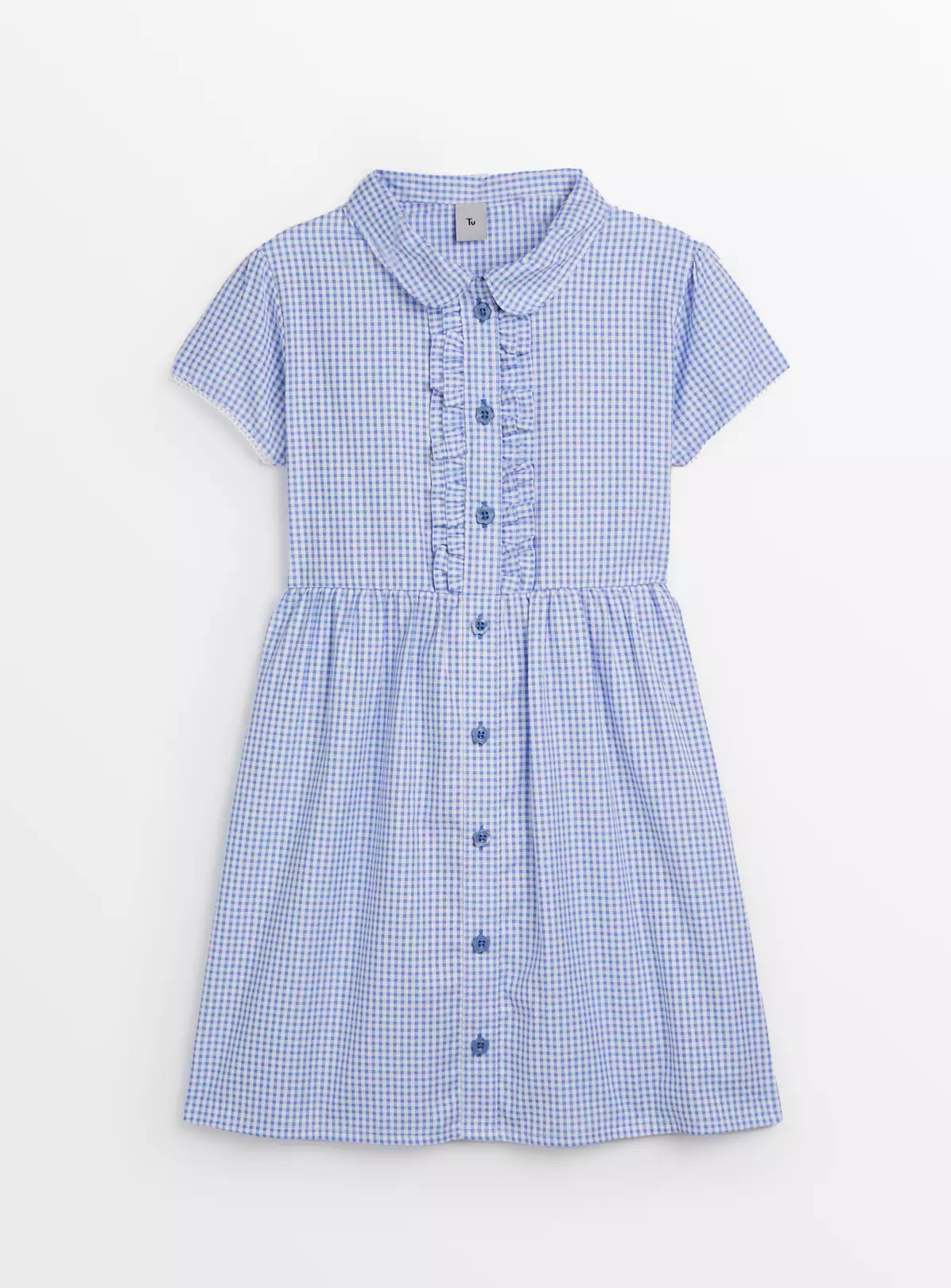 Update their summer school essentials with our cap sleeve gingham dress with a pretty bow to the back and frill detail. It has value fastenings, a classic Peter Pan collar and is made with a fabric which repels water-based stains, and is easy to iron. In a more roomy generous fit. See our full range of school uniform for a variety of clothing to suit their everyday school activity. Available in a variety of colours.