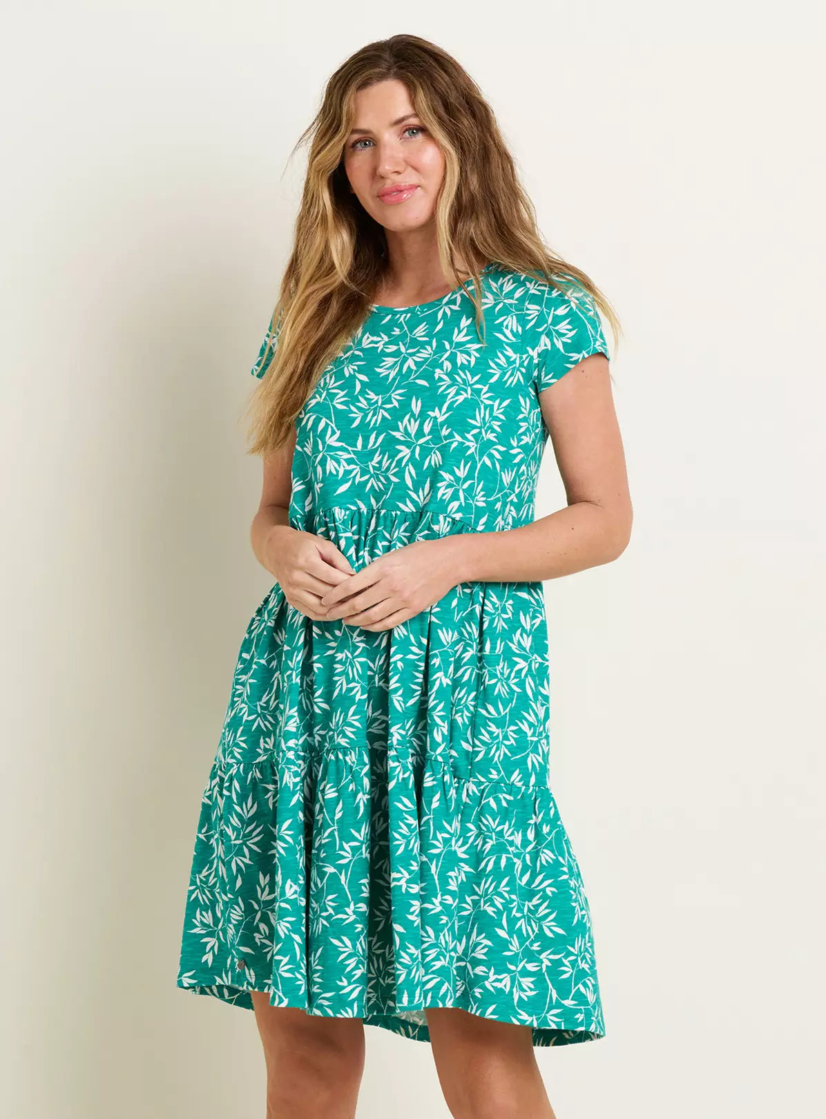 Opt for a laidback look this summer with the Brakeburn Bamboo Leaves dress. This botanical, tiered jersey midi dress has a relaxed fit for maximum comfort. Designed with a round neck, capped sleeves, and practical pockets, this day dress is ideal for holidays and weekends. Also available in this range: a fit flare dress and t-shirt.