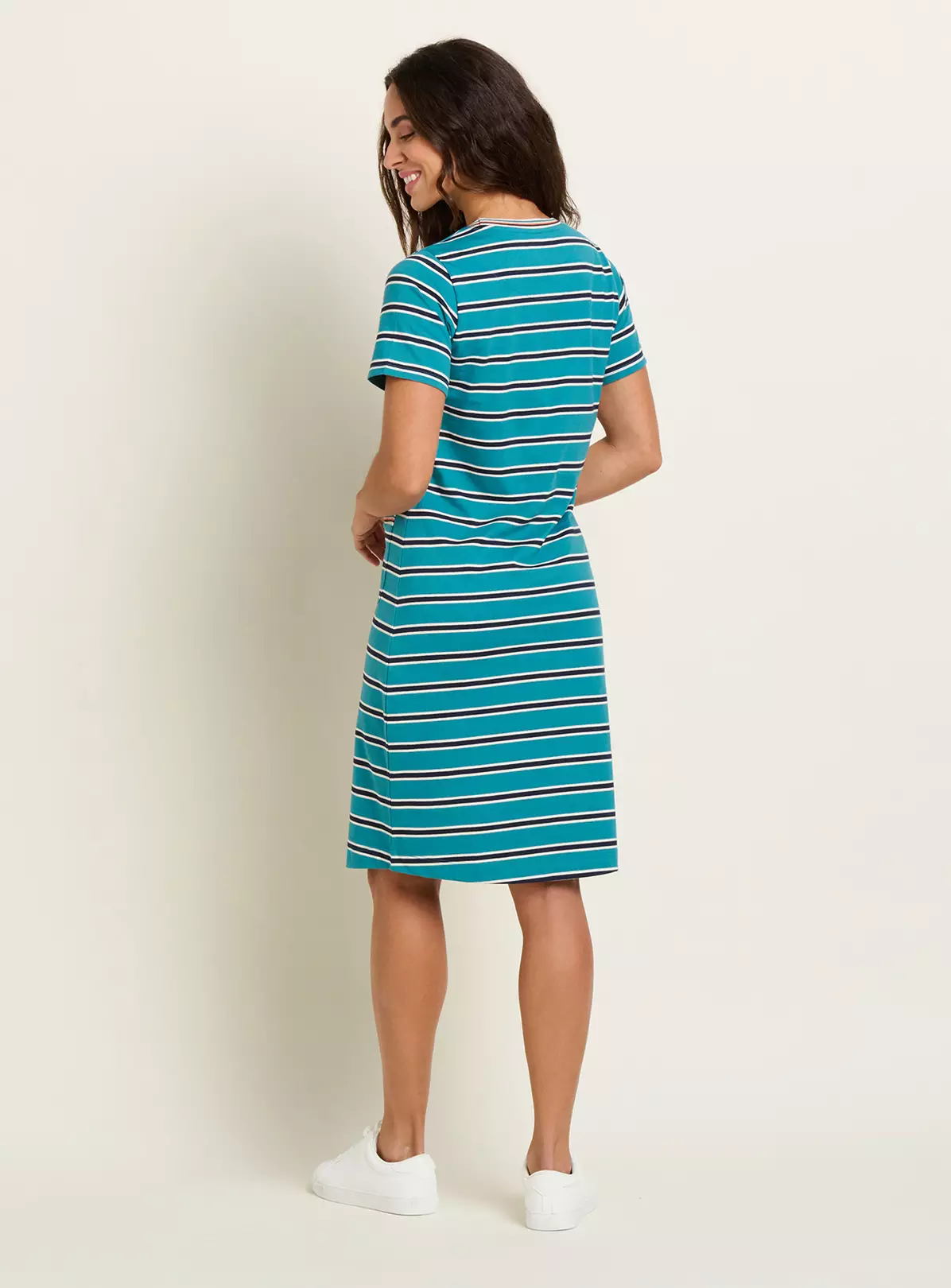 The Bridport is a knee-length, retro stripe jersey dress perfect for the weekend and coastal adventures. It’s fitted, with pockets at the waist, in a fun, vintage-inspired color palette. Wear with your favorite white trainers or sandals.