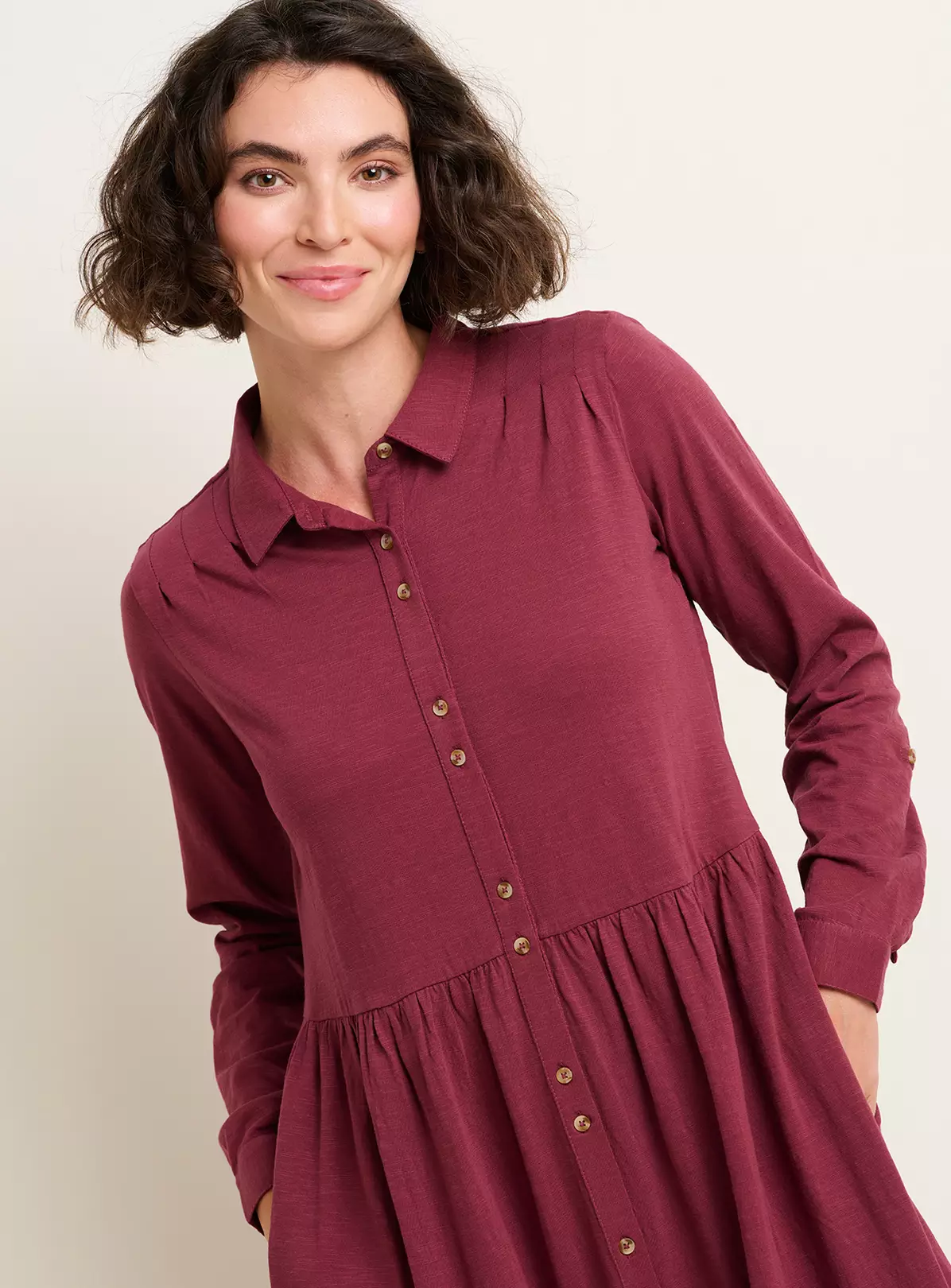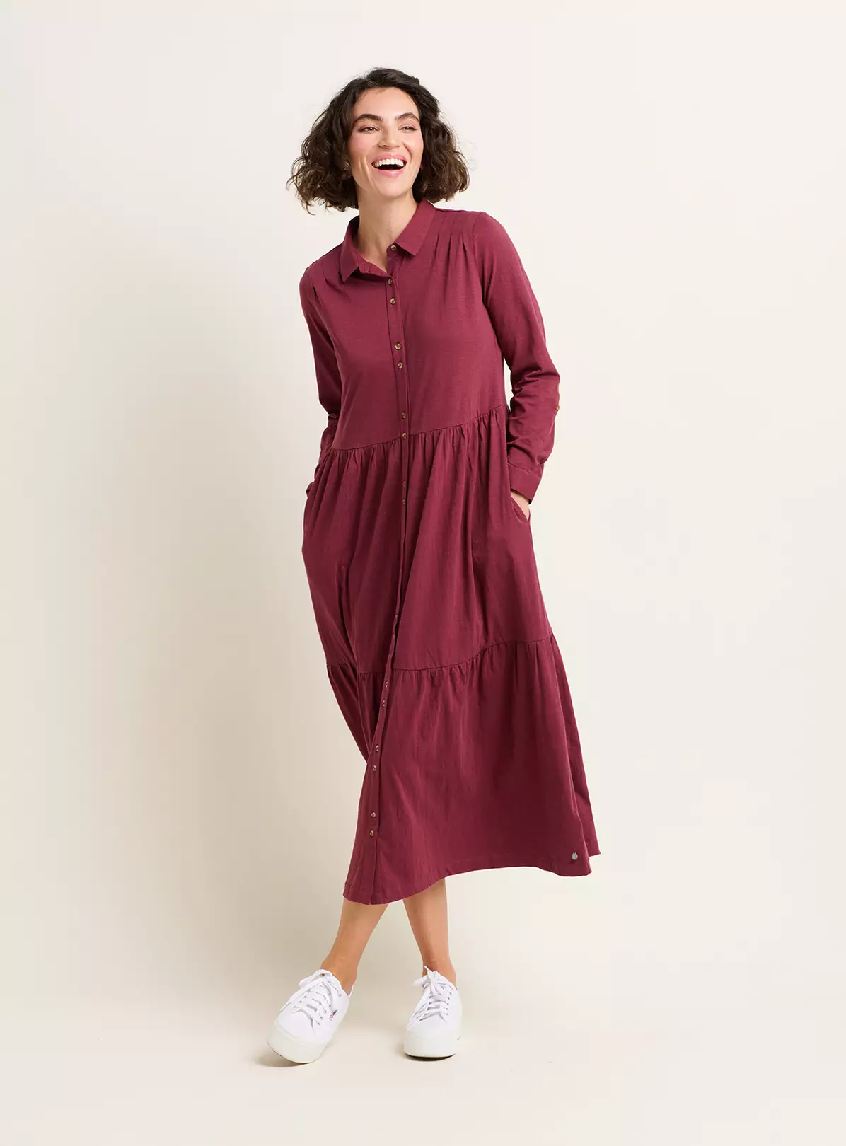 Introducing the Charlotte Midaxi Shirt Dress – a perfect blend of rugged style and feminine charm. Its classic collar and value-through fastening exude timeless appeal, while the adjustable sleeves are great practically while also allowing for personal styling preferences. Woven from jersey fabric, it’s a great choice for outdoor enthusiasts seeking to look good and feel great. It also has pockets.