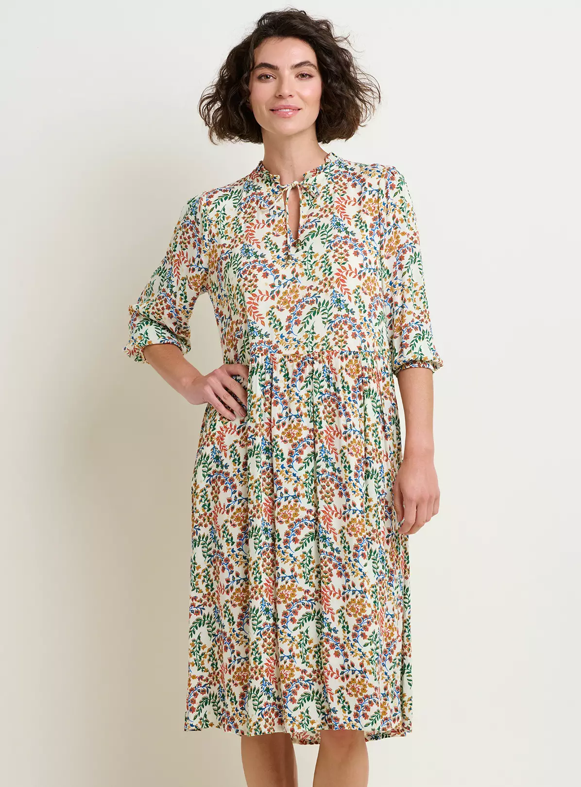 BRAKEBURN Cream Floral Paisley Midi Dress 20