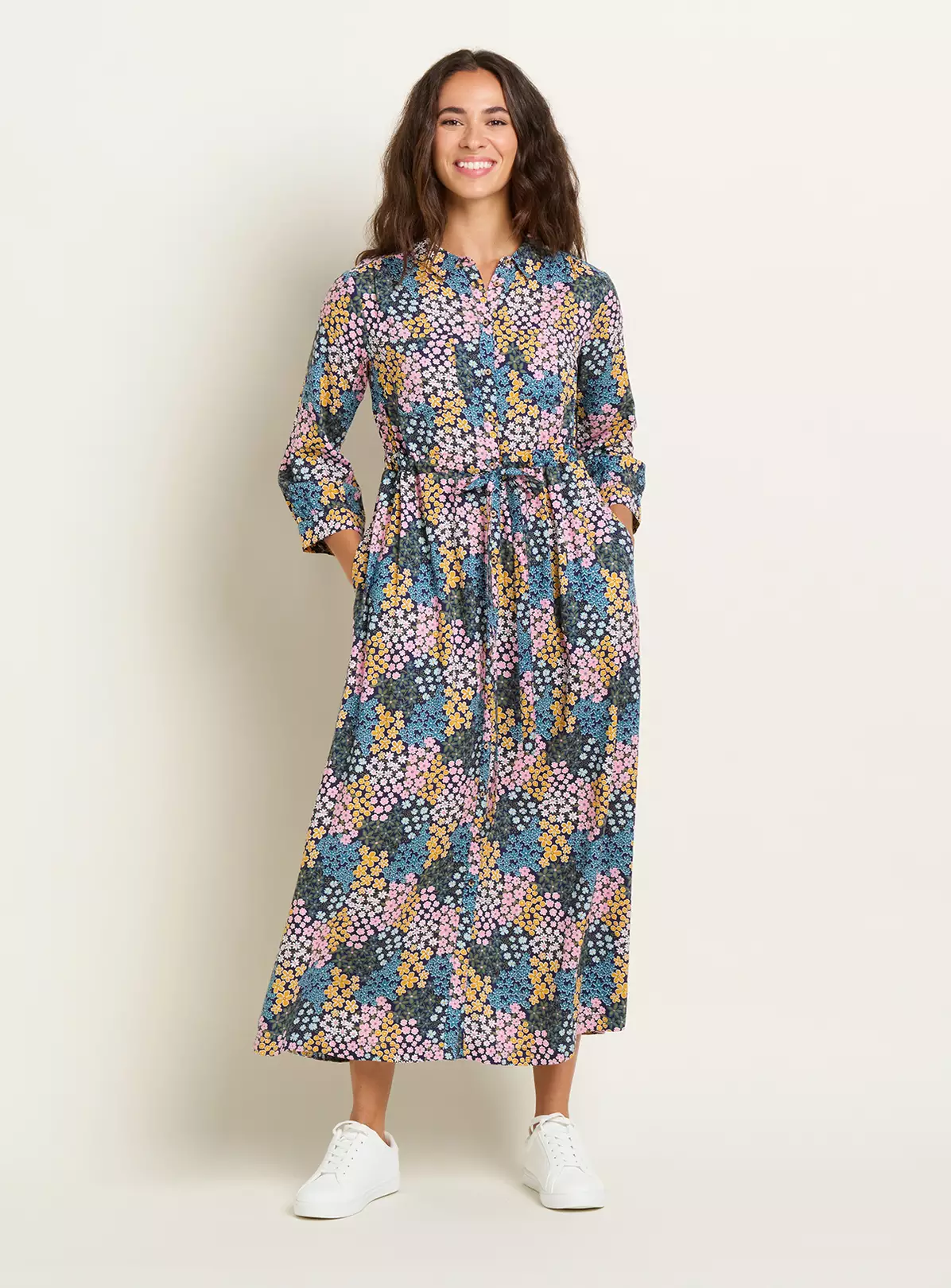 The Wildflower Meadow Shirt Dress is perfect for pattern lovers. It’s a bold, floral print maxi dress with a sleek silhouette. Look beyond the flowers to find a subtle, pull-in tie waist, handy pockets and wooden values. Team with chunky white trainers for work or weekend brunches or sandals for an evening meal with friends.