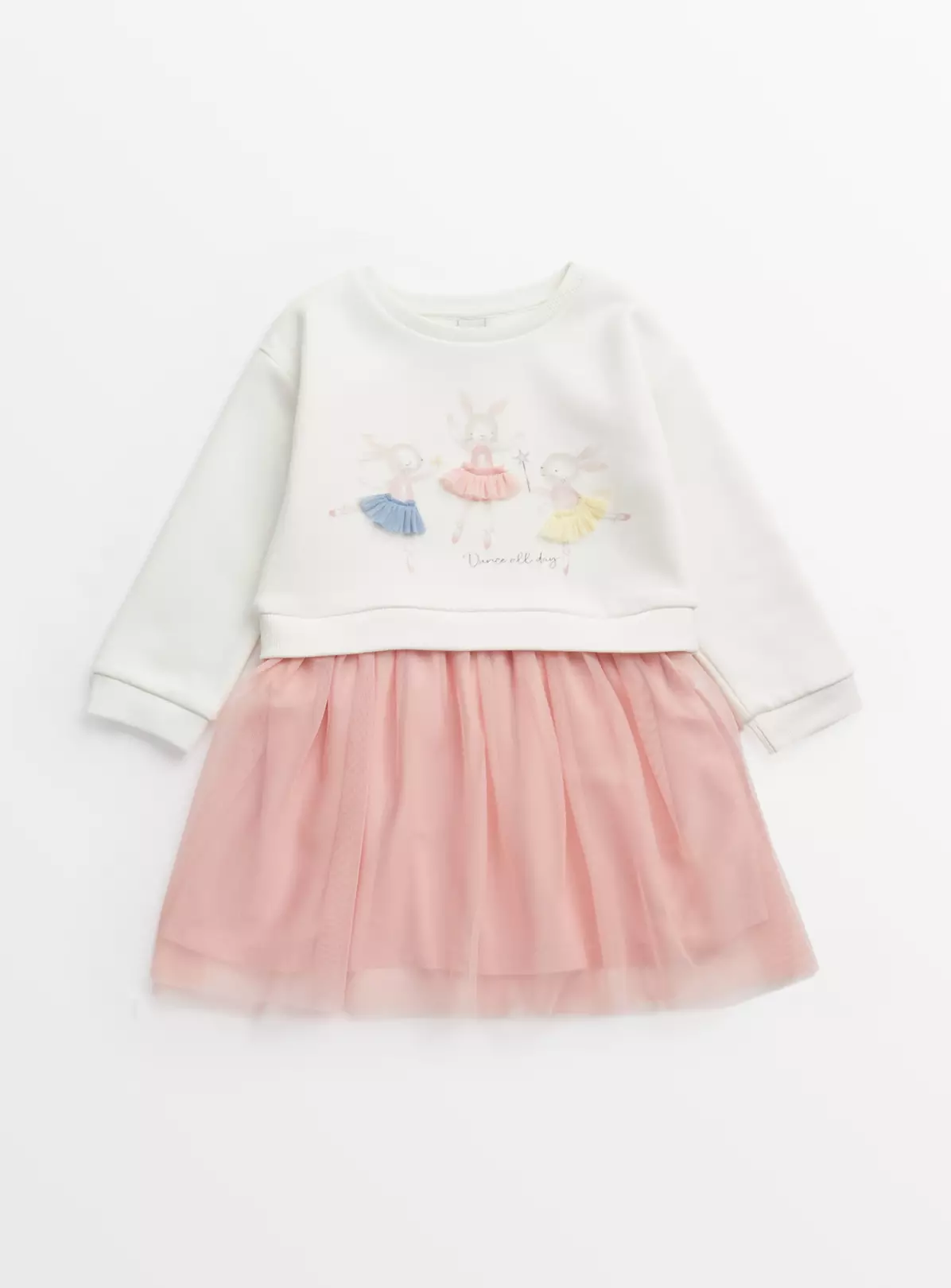 Your little one will love our pretty tutu dress! It features a white long sleeve sweatshirt with a ballerina design on the front and features a pink tutu skirt. Team with tights and trainers for a super cute outfit.