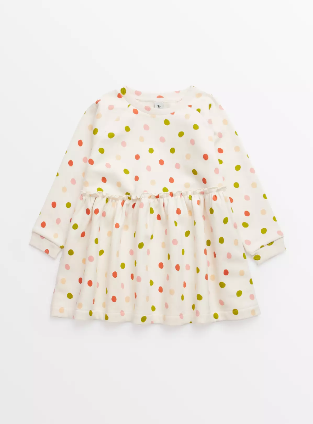Our cream sweatshirt dress features a super cute all-over spotted design and has long sleeves for extra warmth on chilly days! Team it with their knitted tights and boots for the ultimate little look this winter.