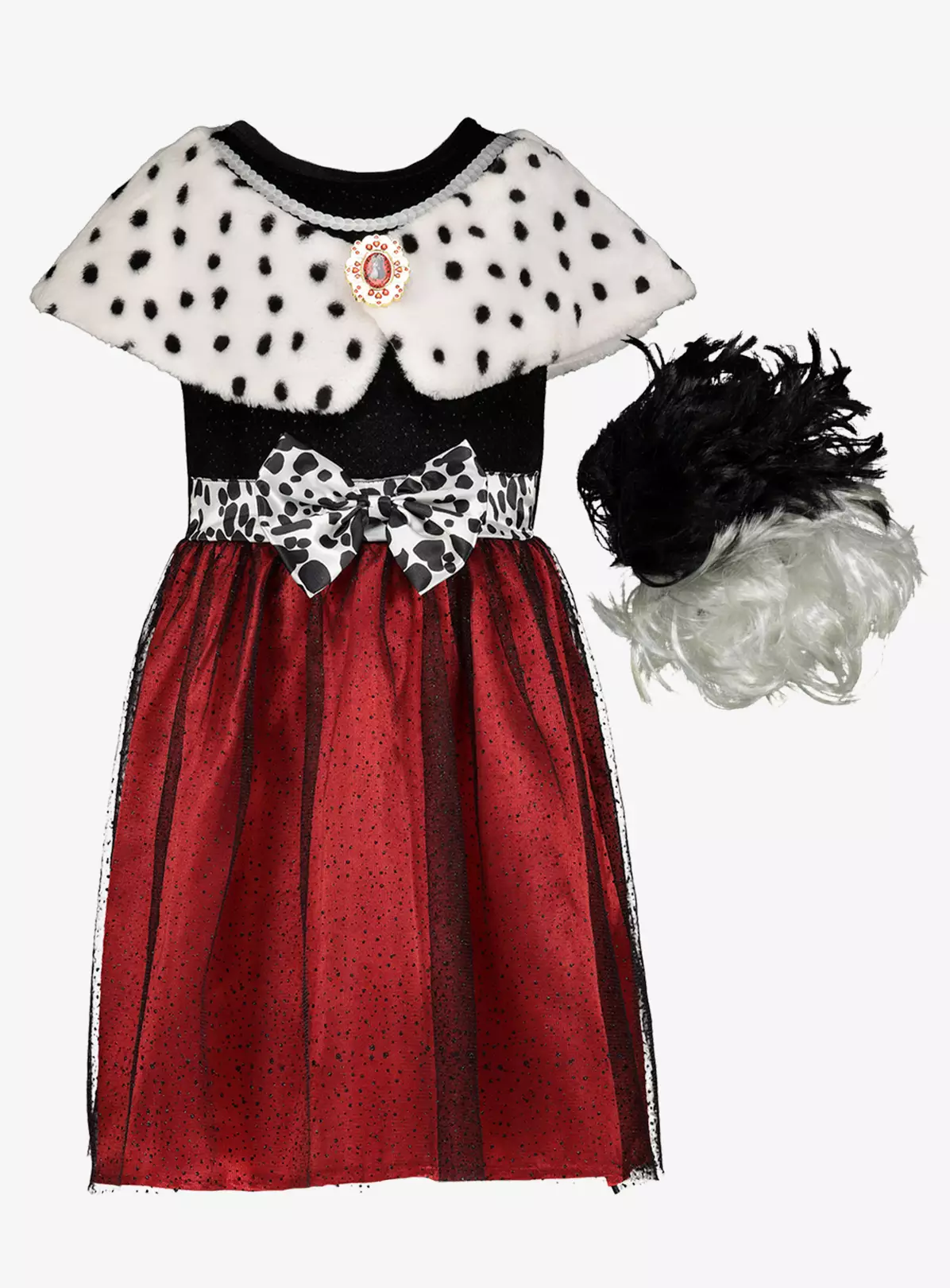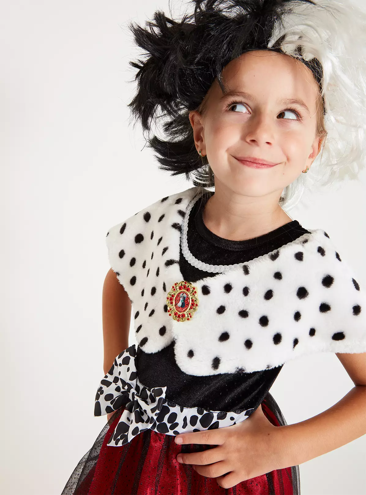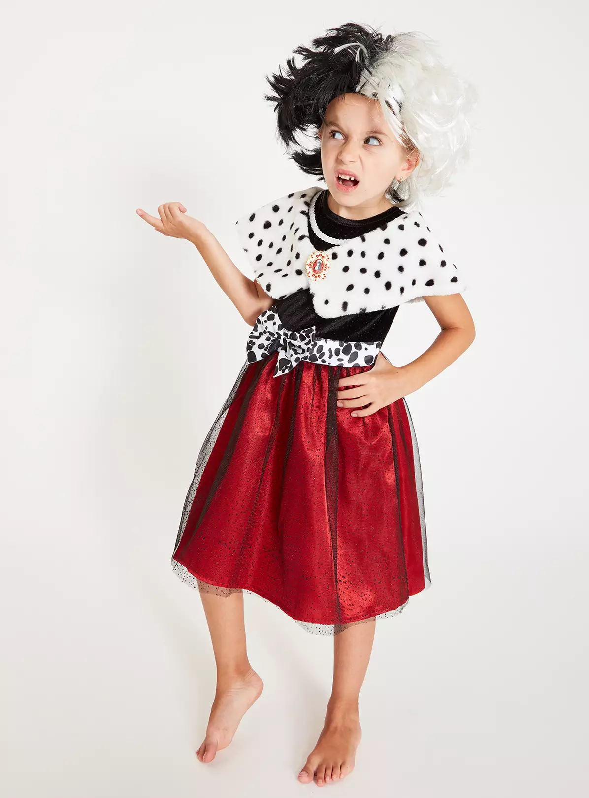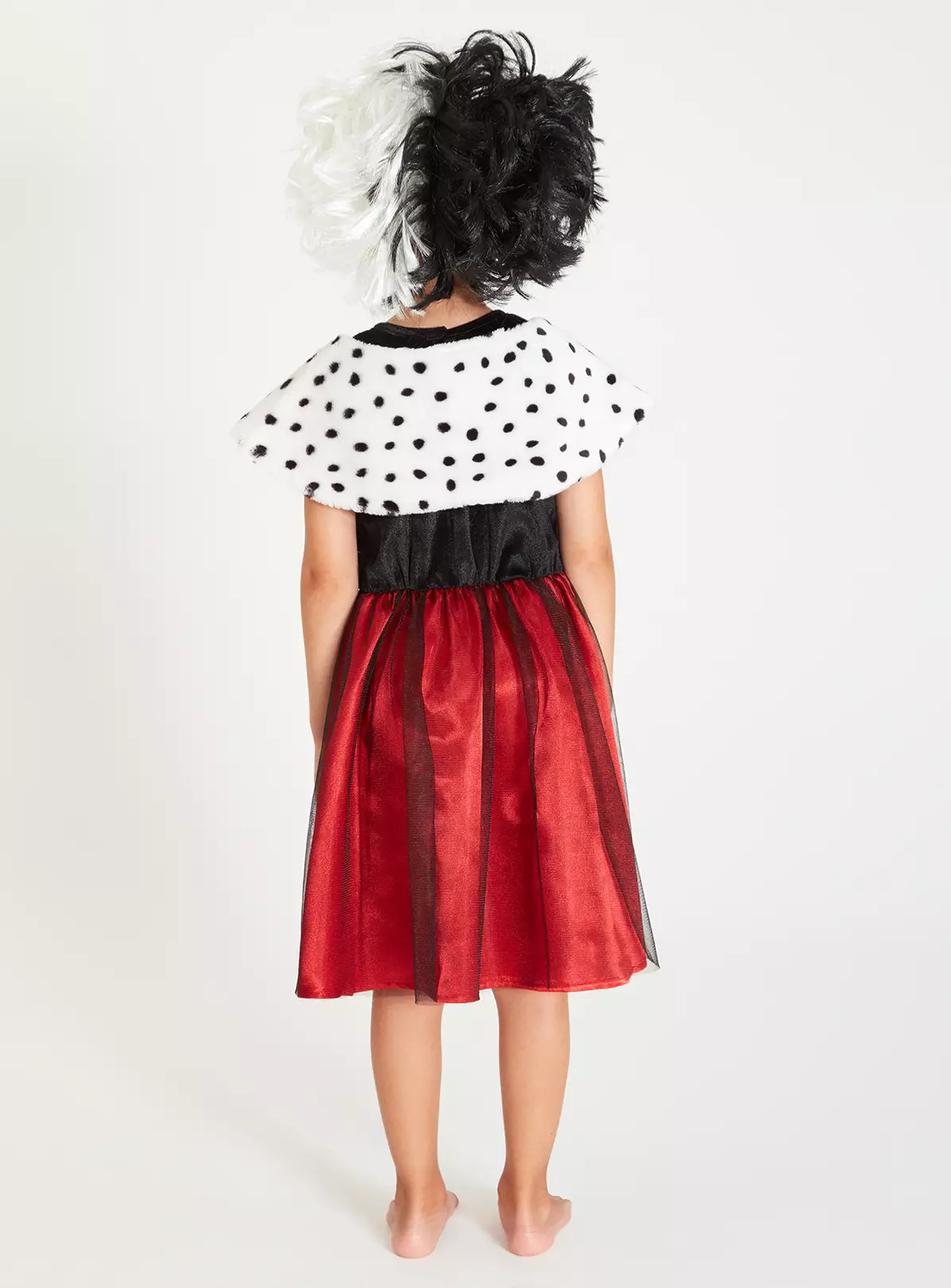 If your little one is excited for Halloween, surprise them with this awesome Disney Villains costume. In the style of the notorious Cruella de Vil from 101 Dalmatians, they will love dressing up in this red dress and monochrome wig set. For more styles and Halloween inspiration, see our full range of fancy dress at Tu kidswear. Please note that for dress up styles below 3 years appearance and features may vary due to safety reasons.