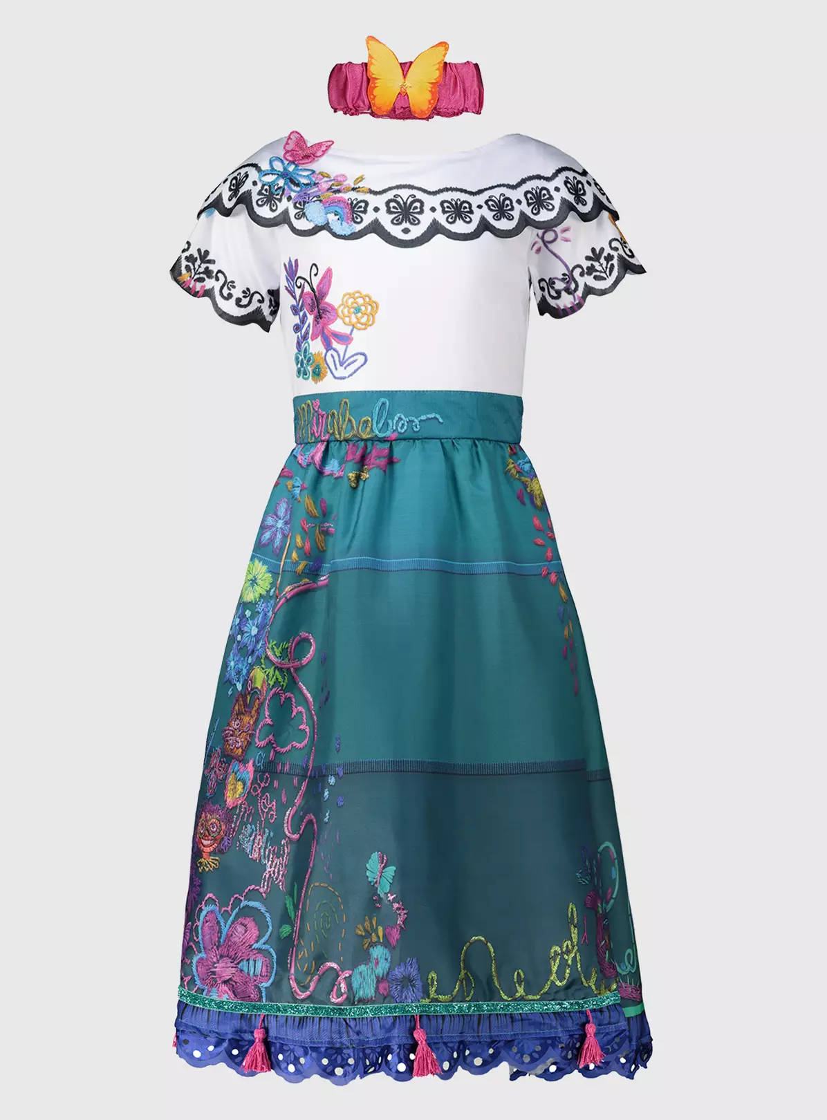 From the magical world of Disney’s Encanto, our amazing Mirabel costume is brimming with the iconic, signature butterfiles, glitz and tassles, and the little butterfly wristband, naturally! Sneak this in the basket and get ready for the imaginative interpretations!