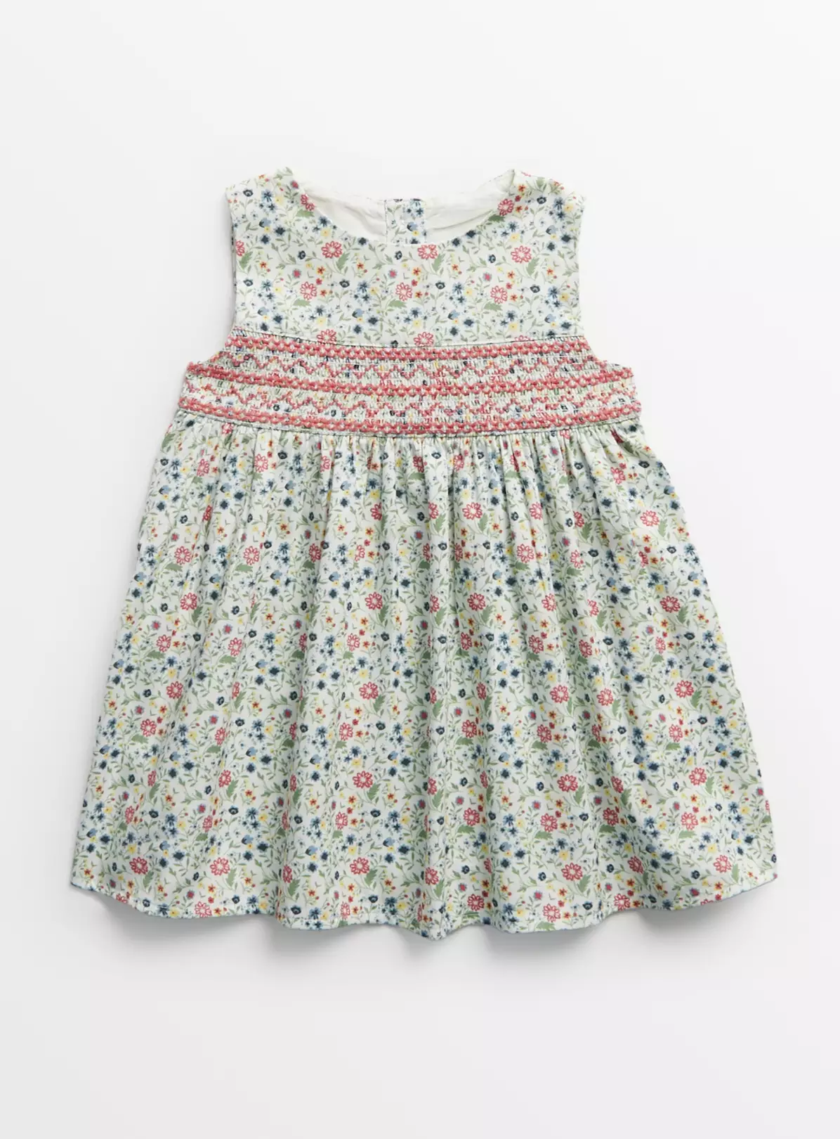 Dress them up in our pretty ditsy dress this Spring. It features a sweet floral print throughout with a contrasting pink waistband and its sleeveless! Perfectly pair with a pretty knitted cardigan for cooler days.