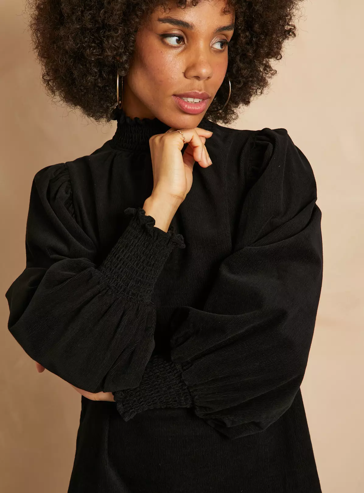 EVERBELLE Black High Neck Short Corduroy Dress 18