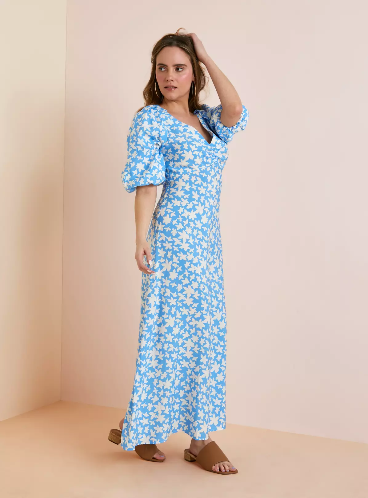 - Soft blue floral midaxi dress
