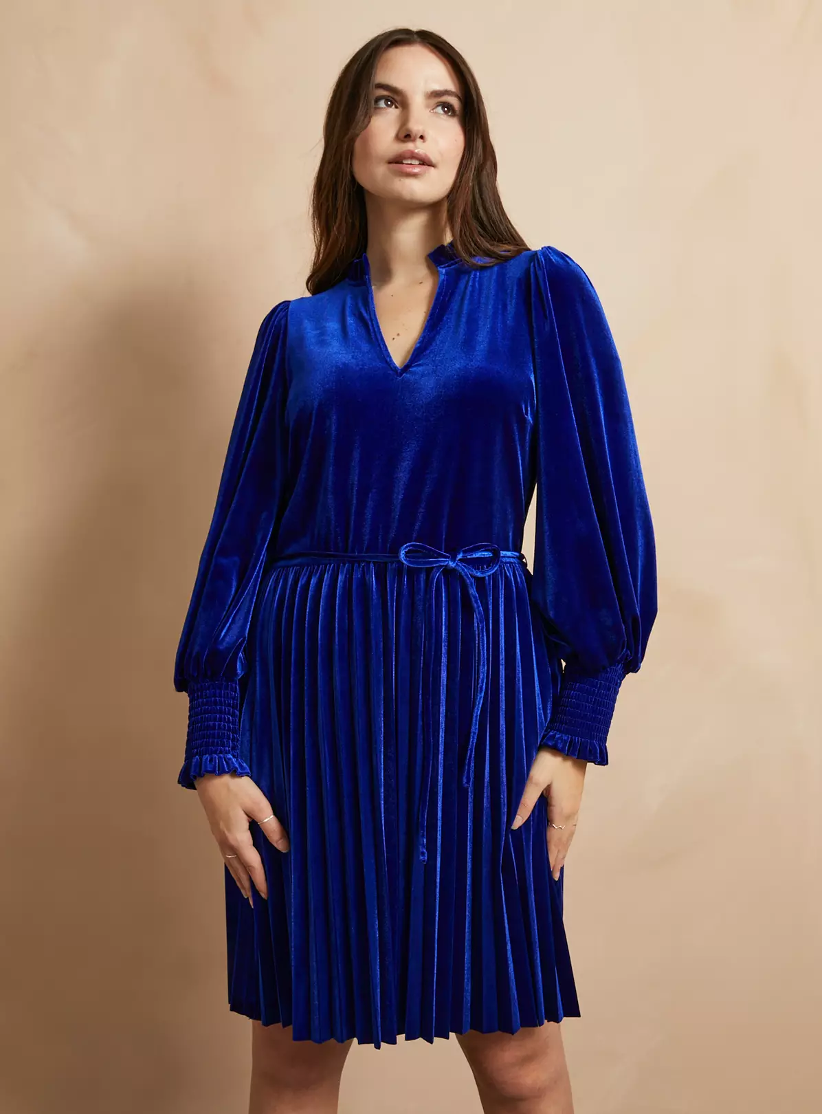 EVERBELLE Blue Velvet Pleated Mini Dress 16