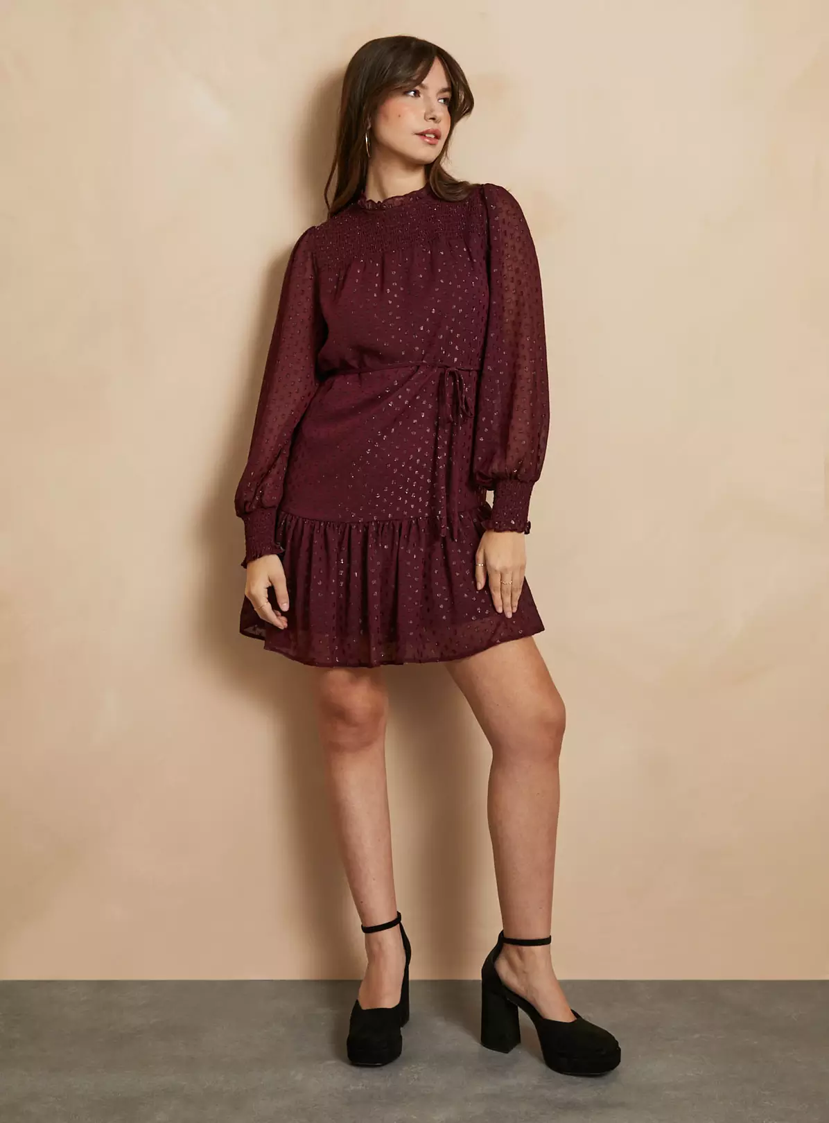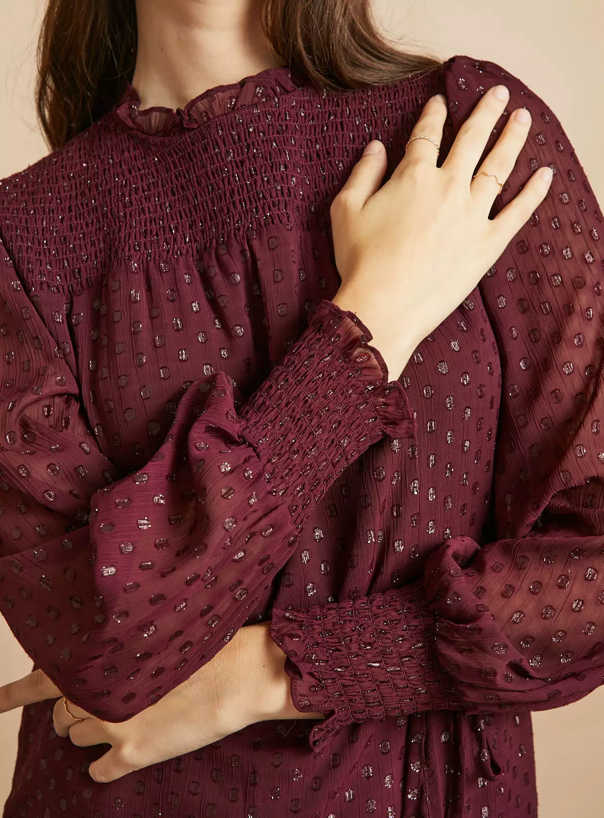 EVERBELLE Burgundy High Neck Dobby Dress 6