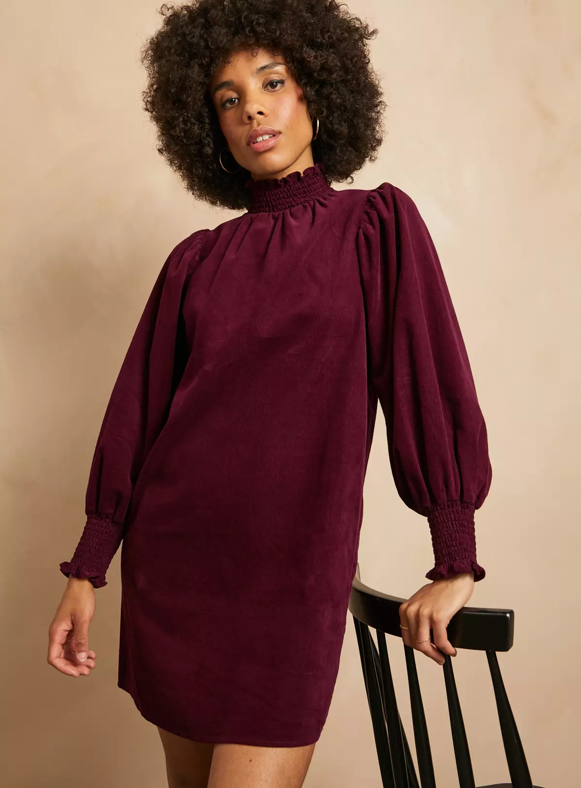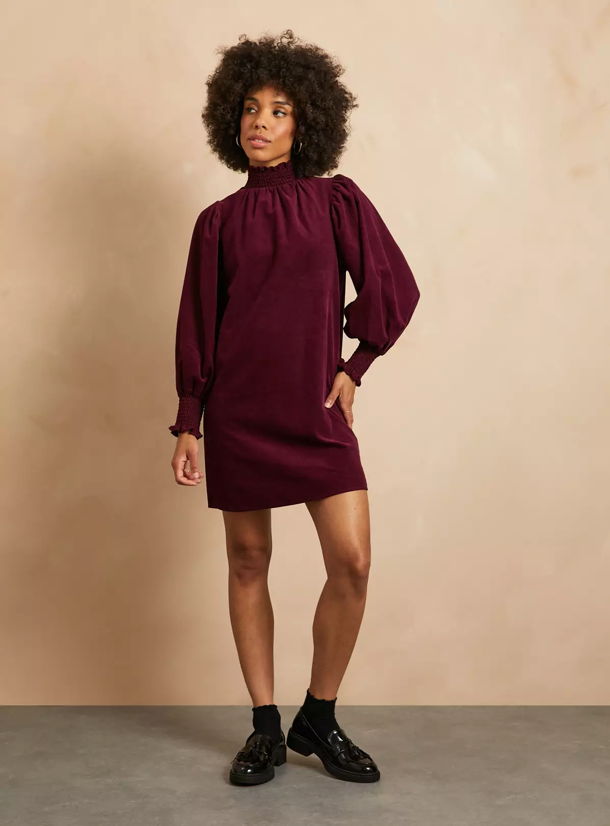 EVERBELLE Dark Red High Neck Short Corduroy Dress 18