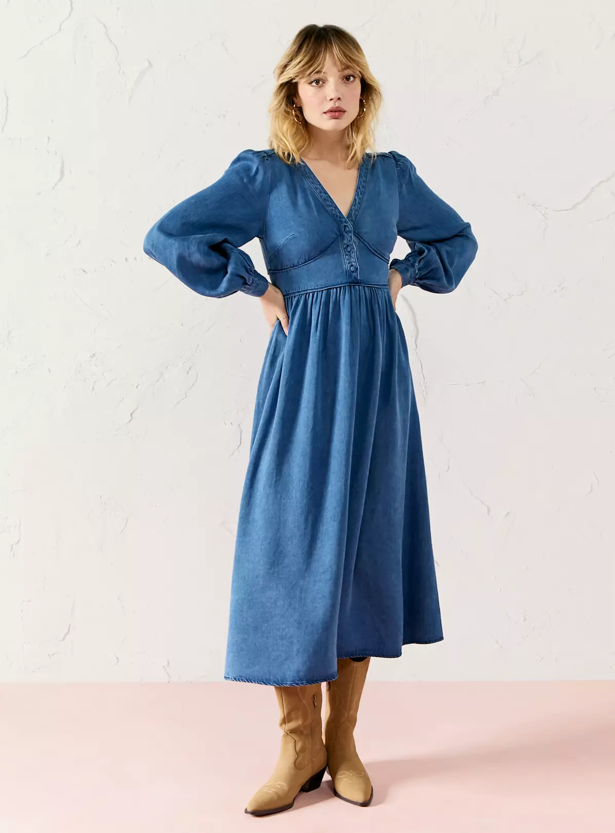 EVERBELLE Tencel Volume Sleeve Midi Dress 16