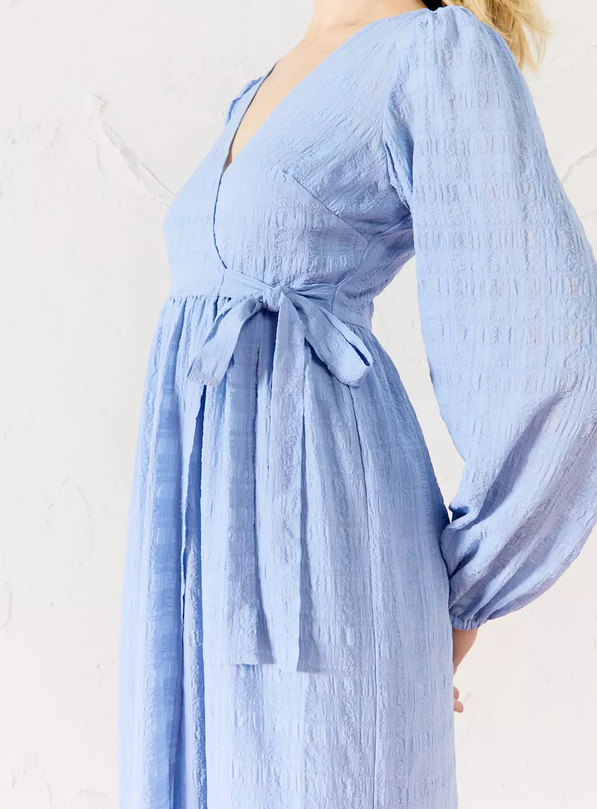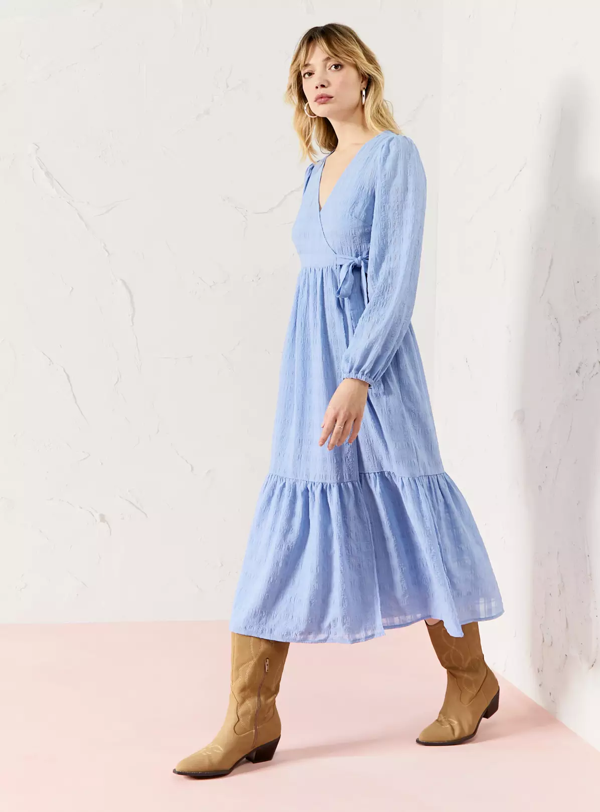 EVERBELLE Woven Check Wrap Midi Dress 20