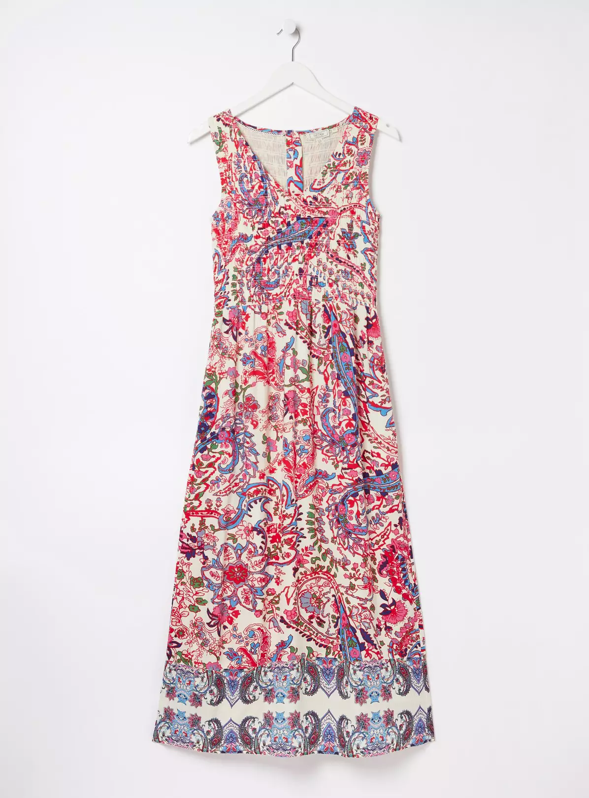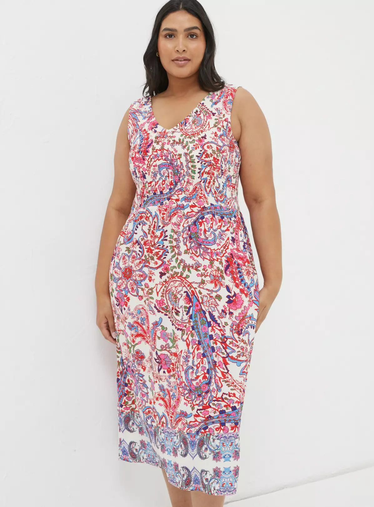 Add a splash of colour and pop of pattern to your new season style with our Aria paisley dress. This 100% LENZING™ ECOVERO™ viscose dress features a flattering shirred bodice, value-up back and handy side pockets. Whether you’re walking in the sand or along the high street, this dress is made for fun in the sun.