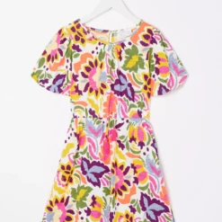 They’ll adore the fun print of this dress! Inspired by the spirit of creativity this dress is bright, beautiful and perfect for a season of sunshine. Design details we love include the puff sleeves and adjustable tie waist. Team it with trainers and a denim jacket.