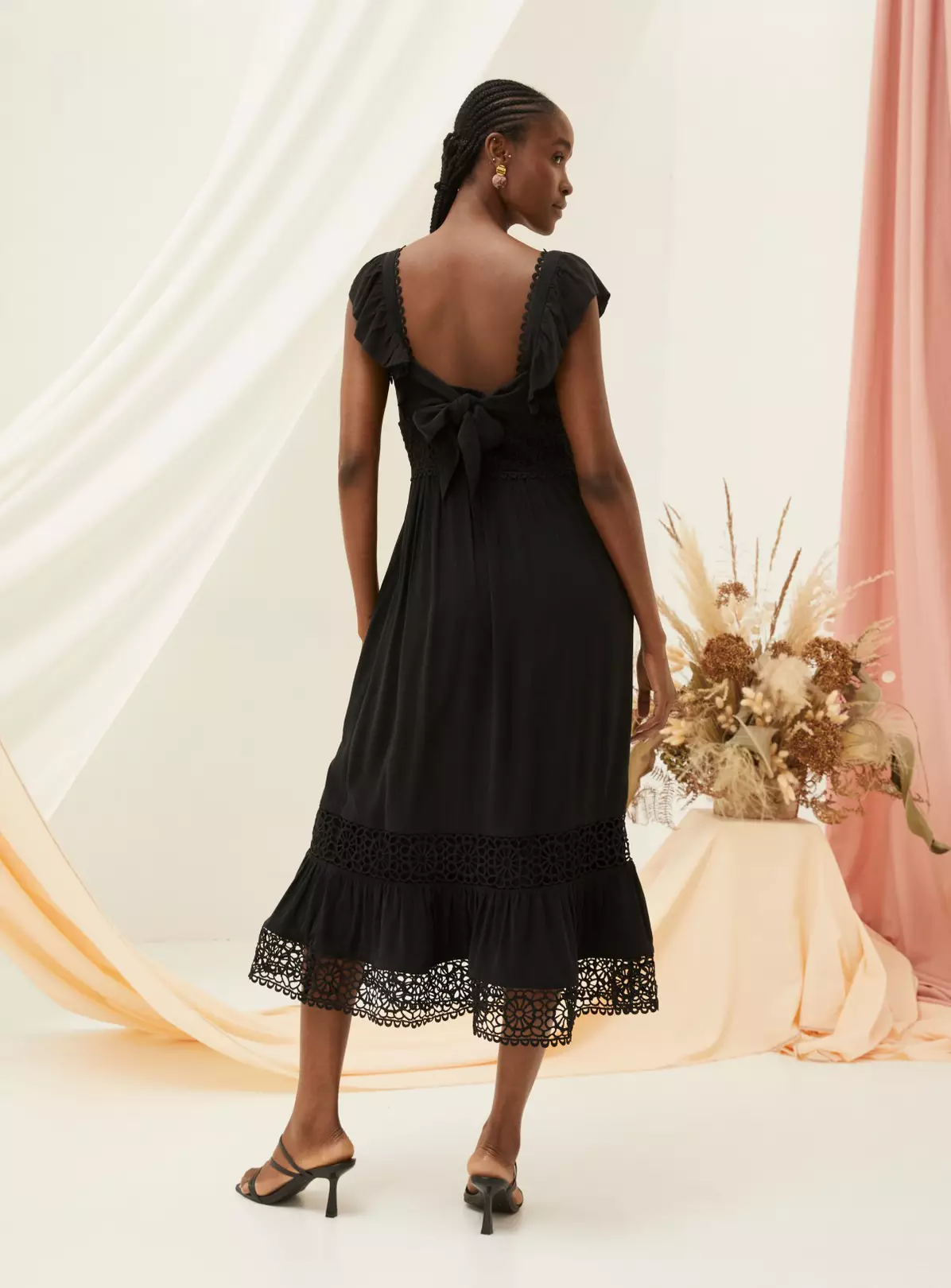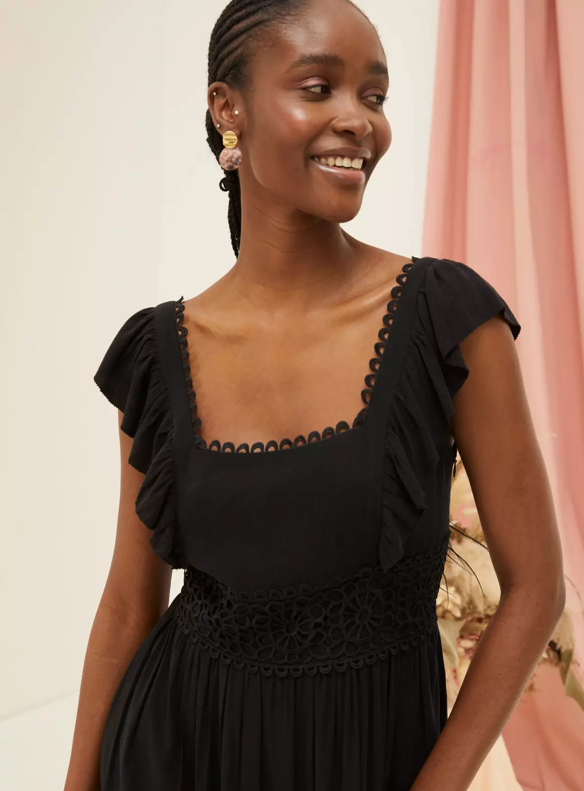 FATFACE Hibiscus Lace Midi Dress Black 18