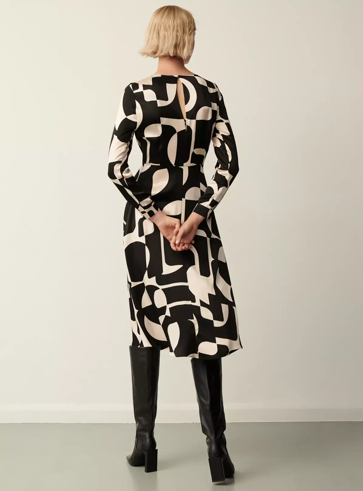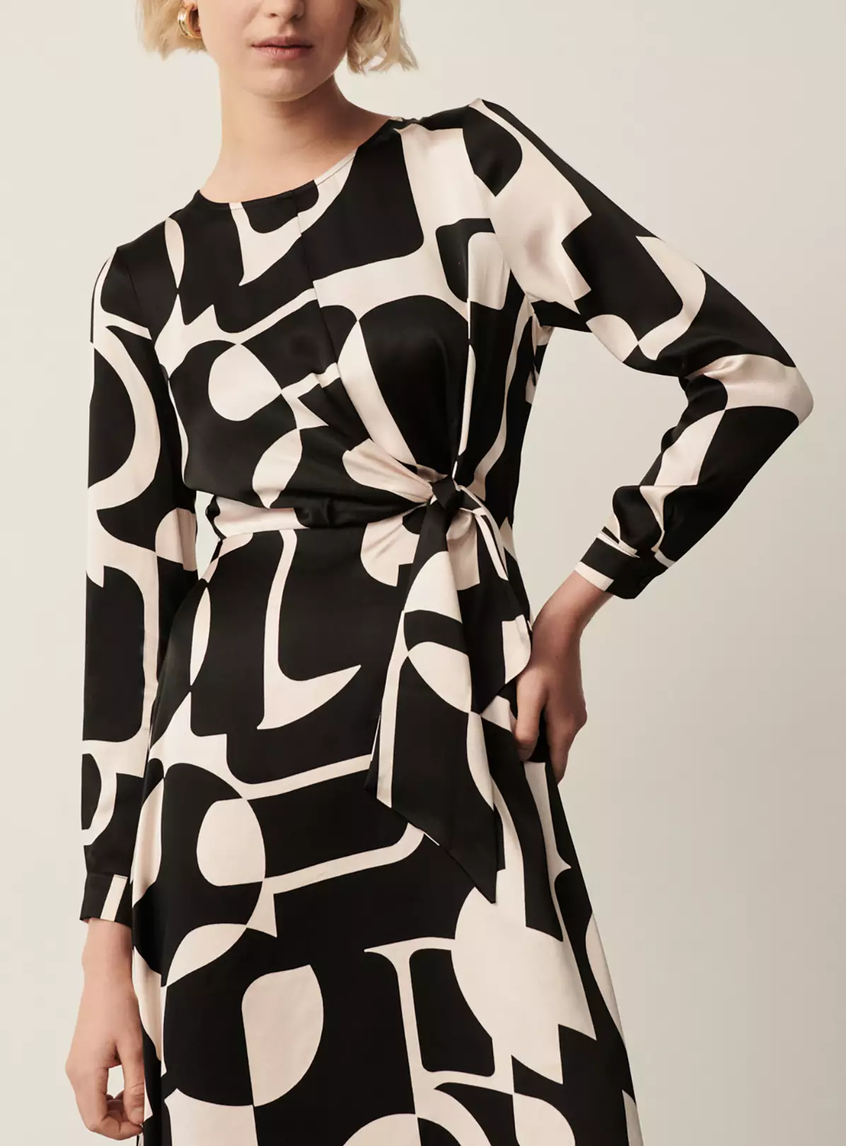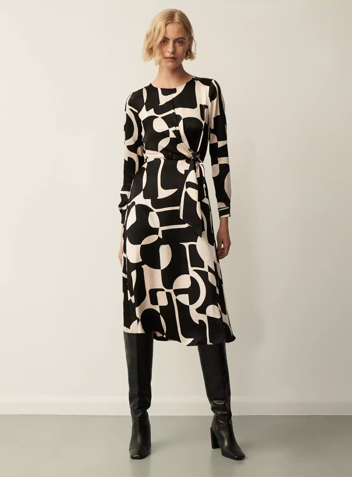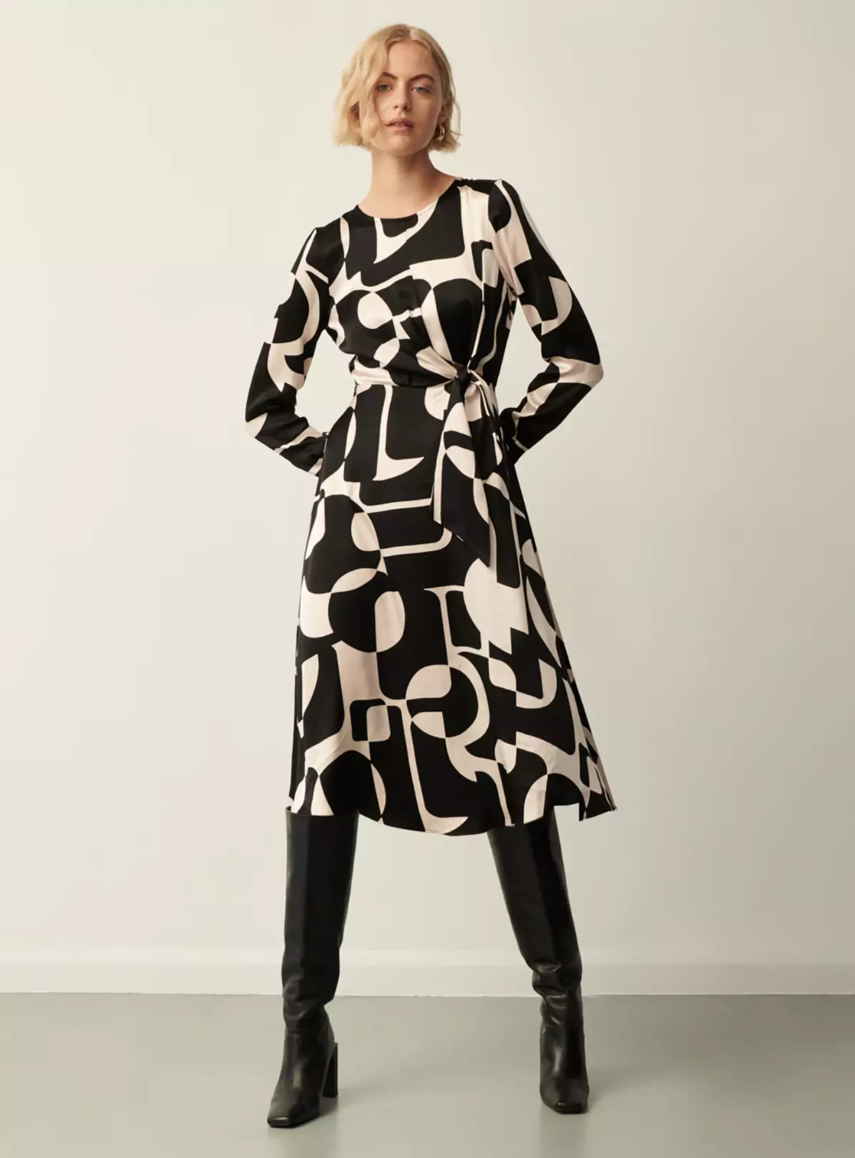 Simple yet stunning, Annie is a midi length dress crafted from our luxurious satin fabric. With tie waist detail that accentuates the waist and sleeves with cuff detail, Annie will take you from the office to after work drinks in effortless style. Dress up with wedges or down with sneakers.
