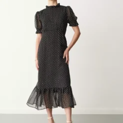 Our Camile long-midi dress can be dressed both up or down. Providing a fit and flare style, Camile features a ruffled high neckline, voluminous sleeves with elasticated cuffs and a tiered hem that beautifully finishes off the bottom of the dress for added movement.