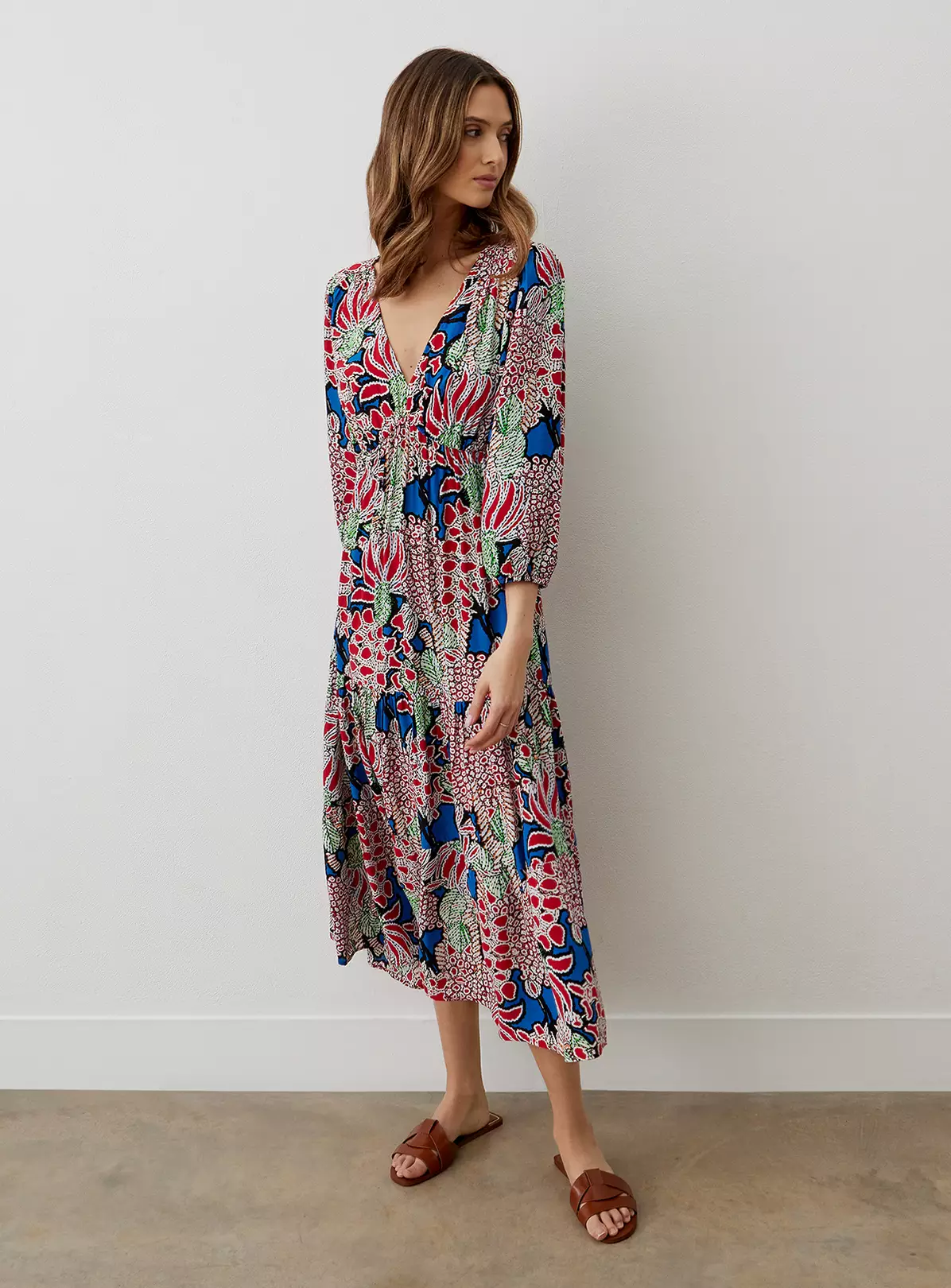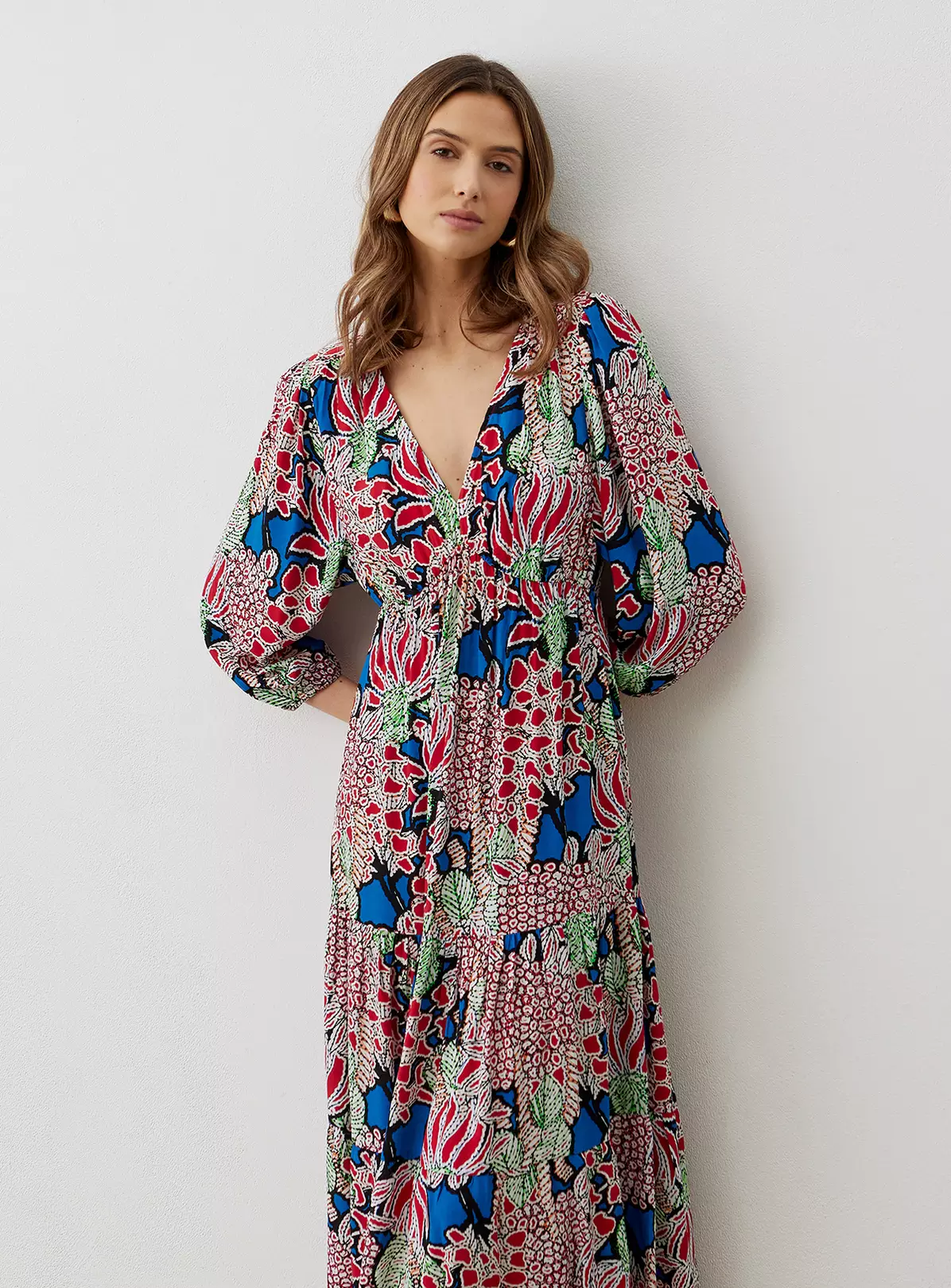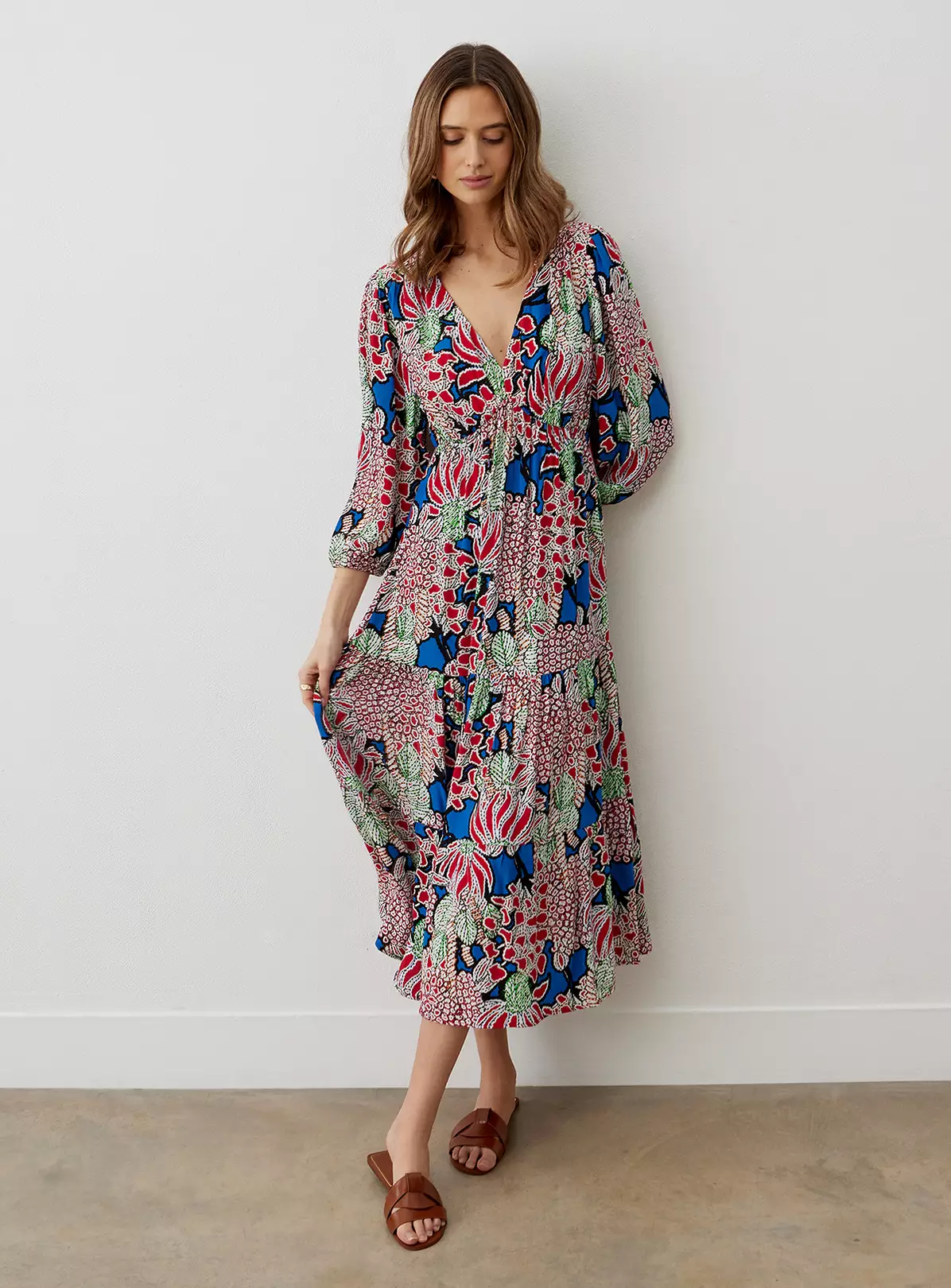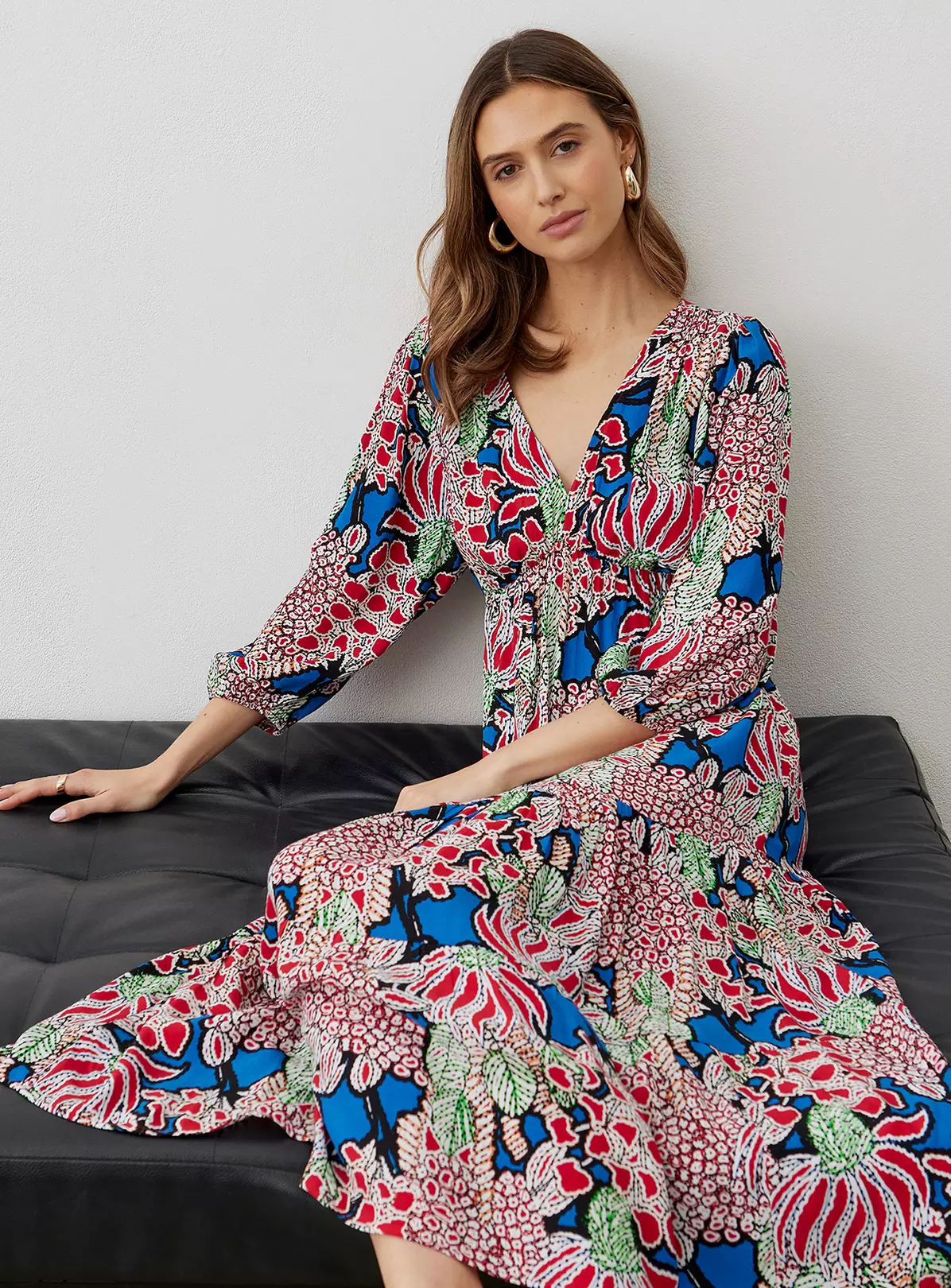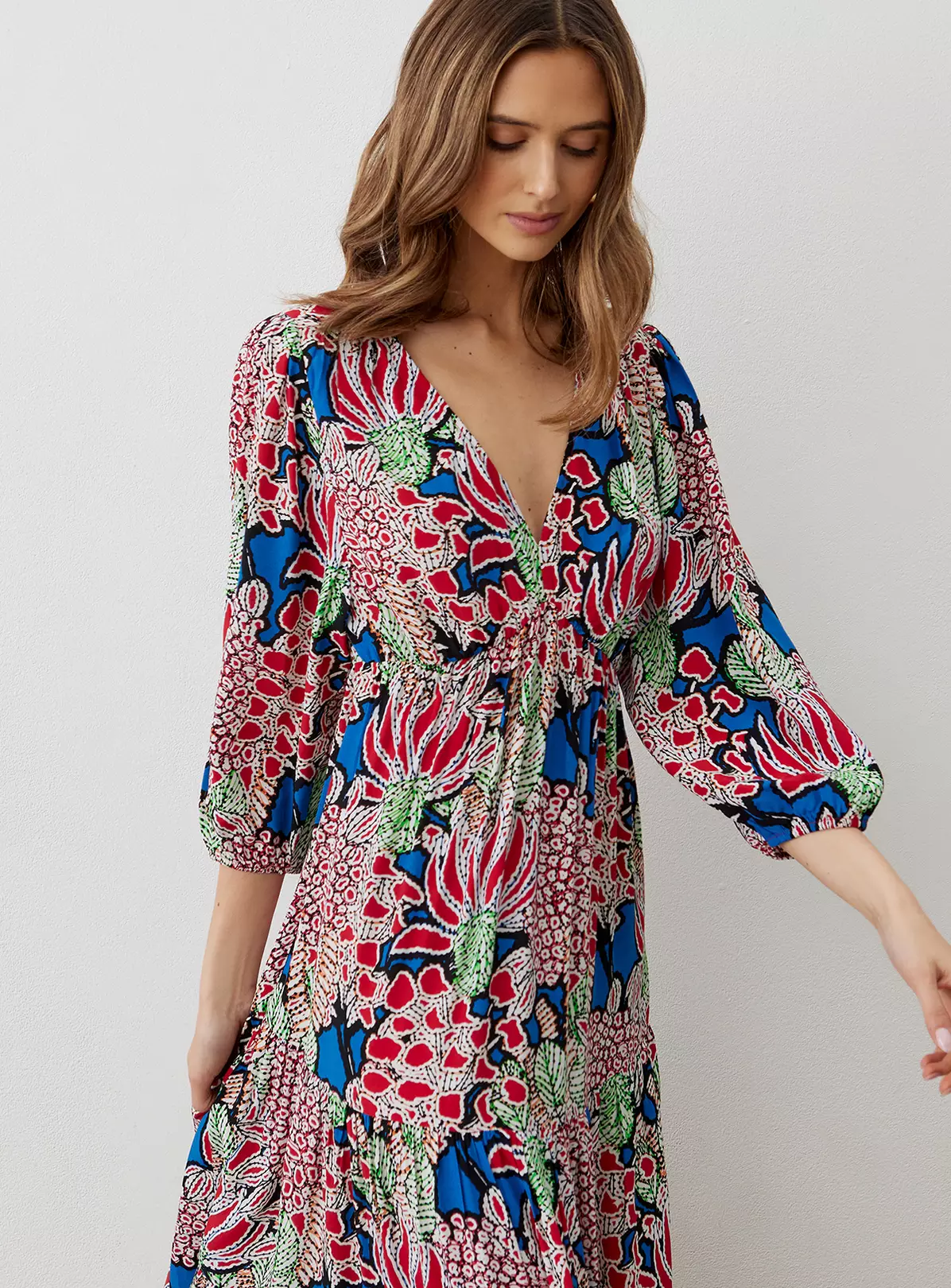 In a gorgeous floral print, Lesley is a midi length dress with short, puffed sleeves. With a feminine v-neckline and an empire line bust she makes for a flattering fit. Layer over a jumper and grab your favourite shoes to complete this every season look.