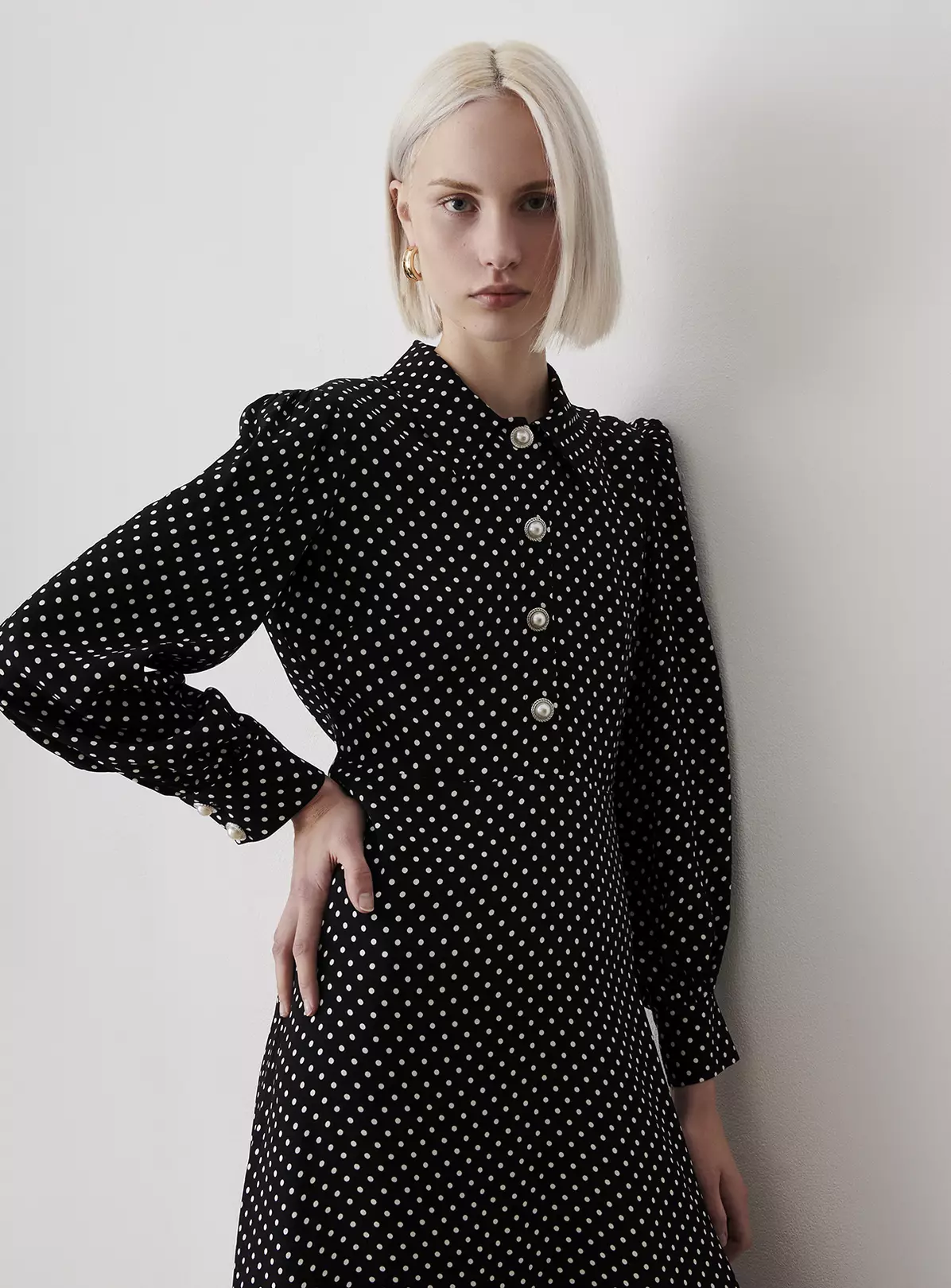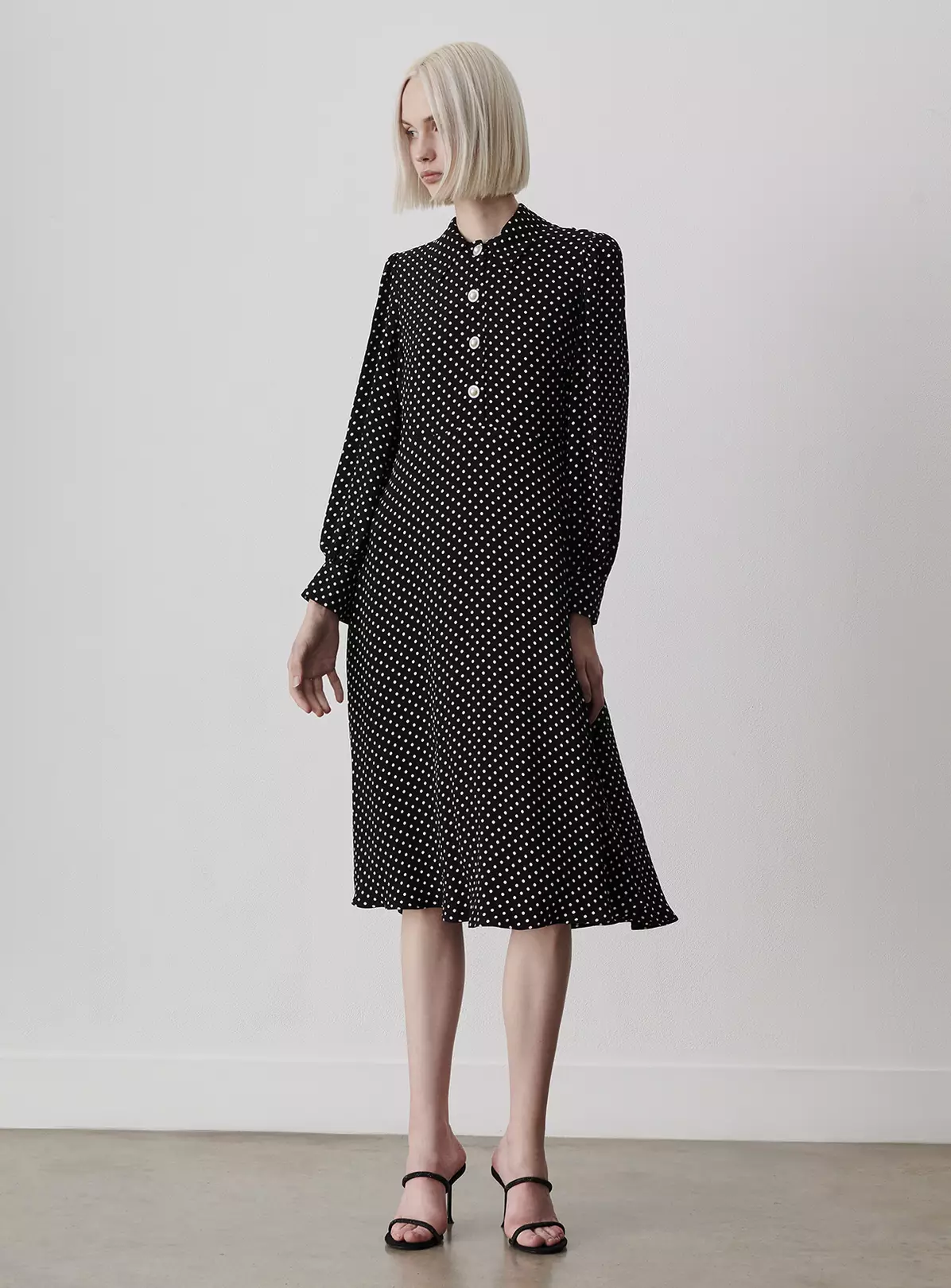 A-line silhouette and made from satin back crepe, our gorgeous Rosa dress is 70’s inspired and perfect for your next social occasion. A classic shirt collar and valueed through to the waist, the dress also features blouson long sleeves that add an on-trend twist to this classically beautiful style.
