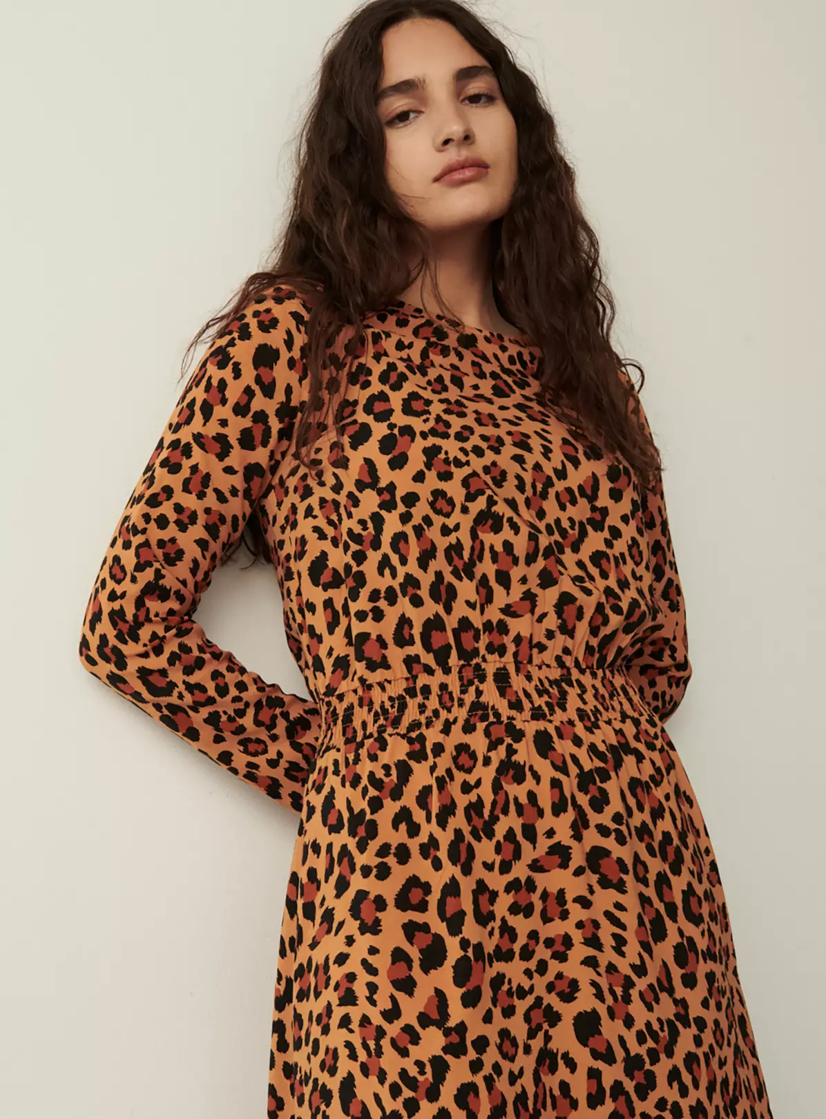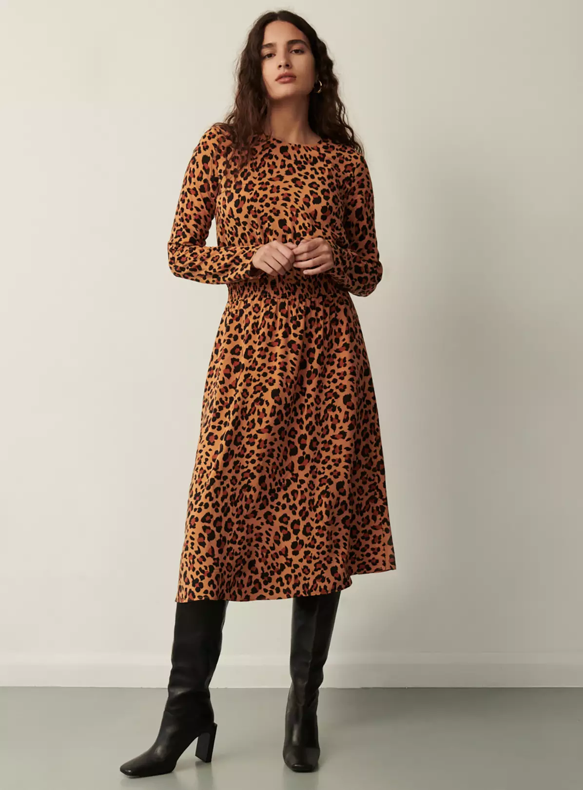 Embrace your wild side in our leopard print Theo midi dress. Made using our soft viscose, Theo flatters every figure, that’s to her elasticated waist and long straight sleeves. A high neckline provides coverage and adds to the sleek drape this dress has to offer. Pair with boots, sneakers or heels.