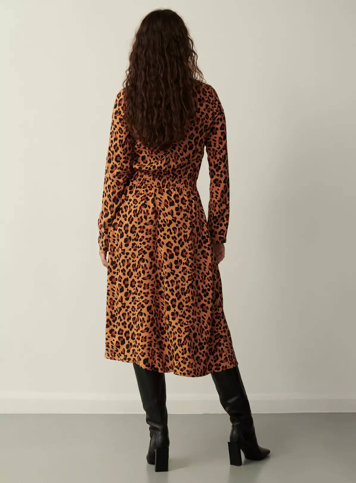 Embrace your wild side in our leopard print Theo midi dress. Made using our soft viscose, Theo flatters every figure, that’s to her elasticated waist and long straight sleeves. A high neckline provides coverage and adds to the sleek drape this dress has to offer. Pair with boots, sneakers or heels.