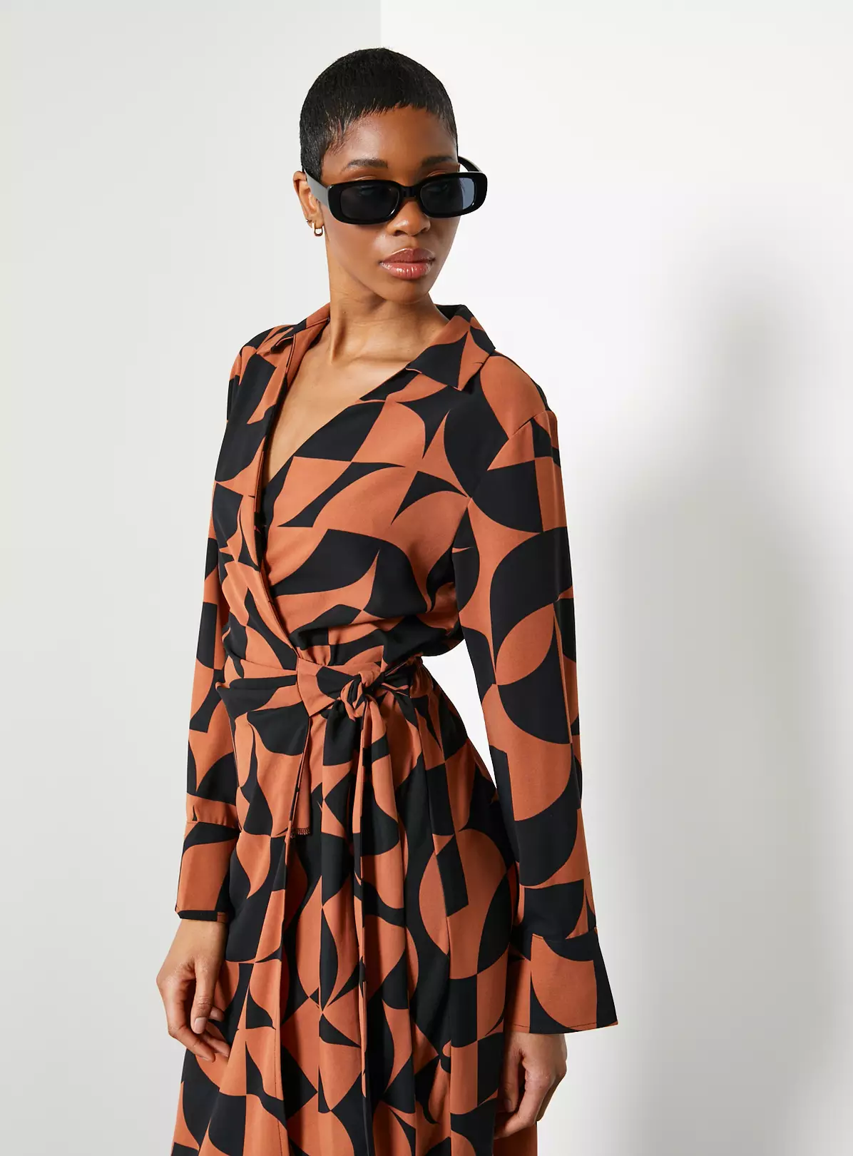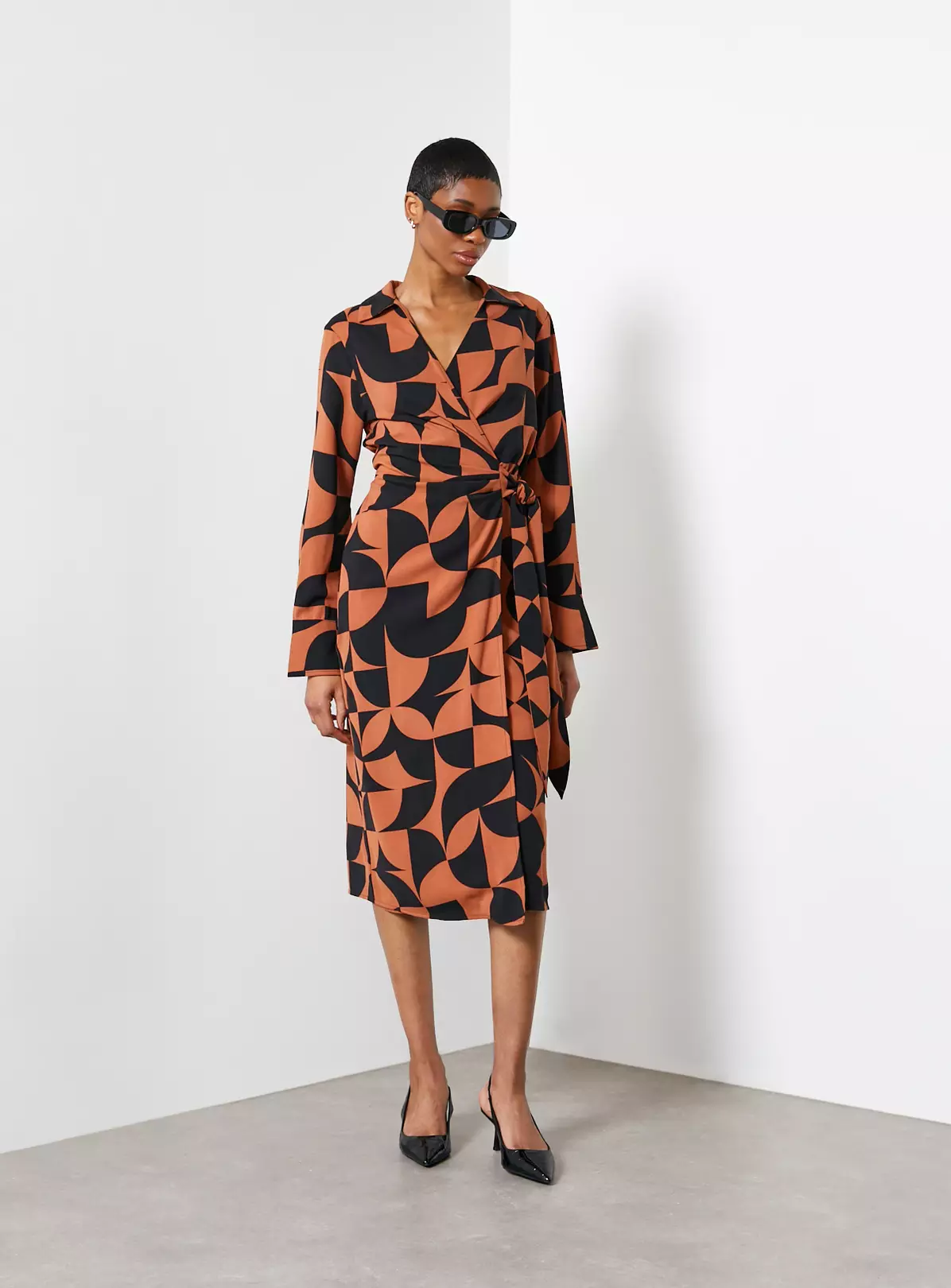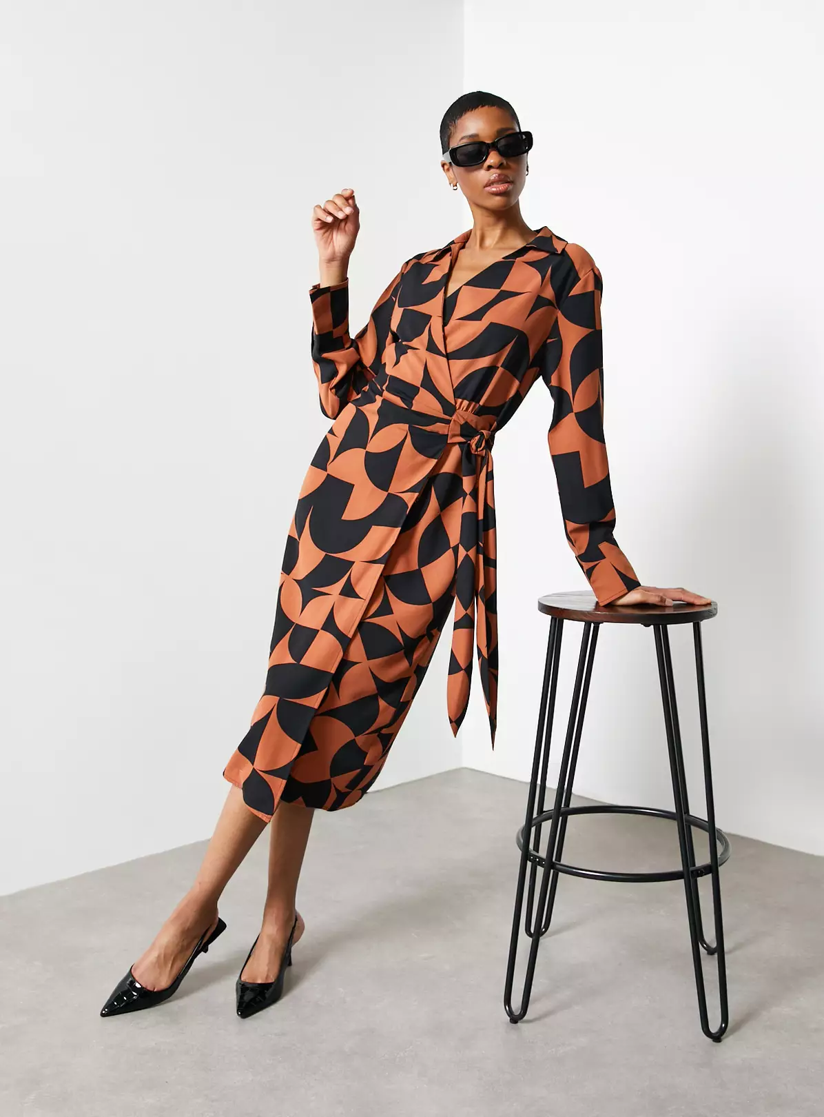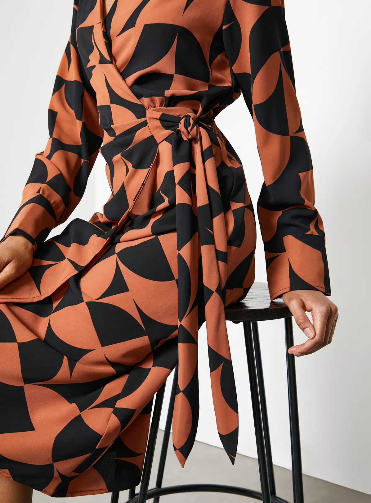 For All The Love Geometric Printed Tie Wrap Midi Dress 20