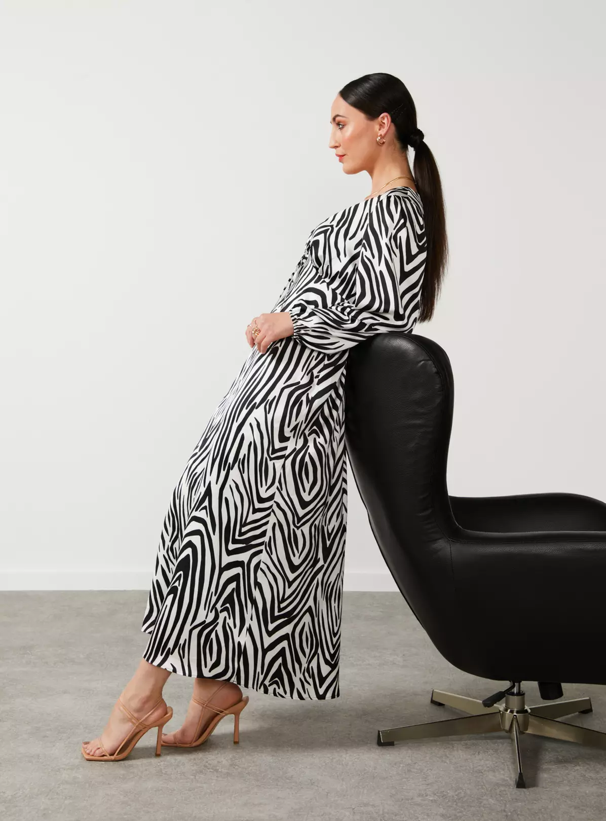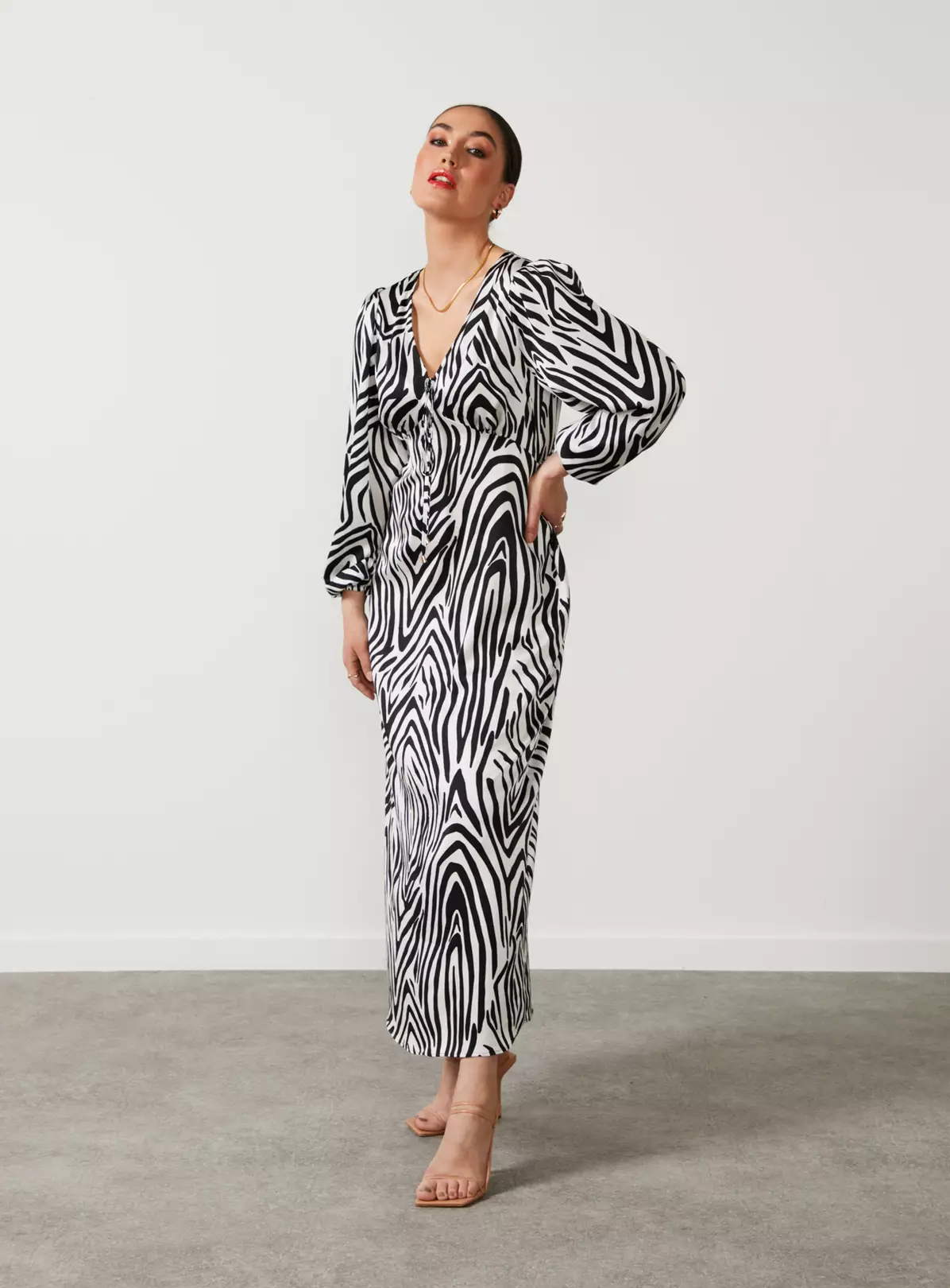 For All The Love Printed Satin Effect Zebra Midi Dress 18