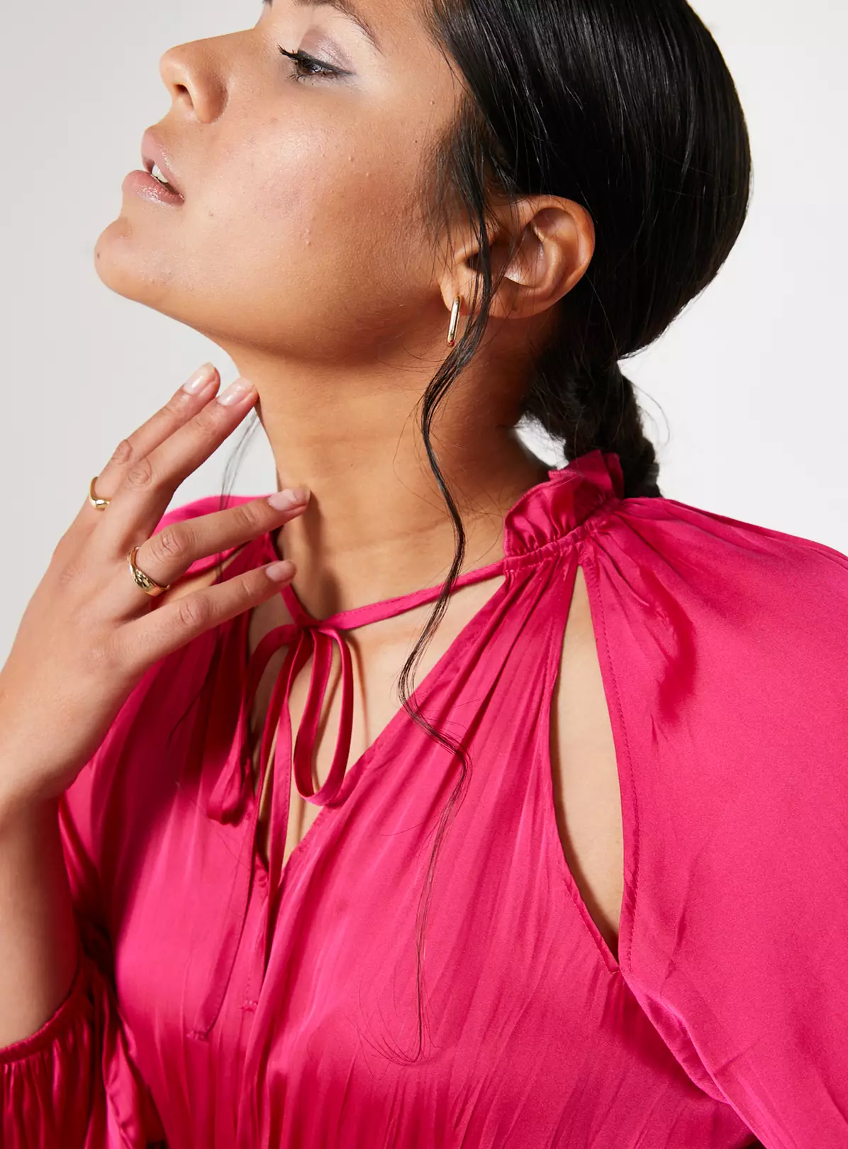 For All The Love Red Crushed Floaty Satin Tie Front Midaxi Dress 18