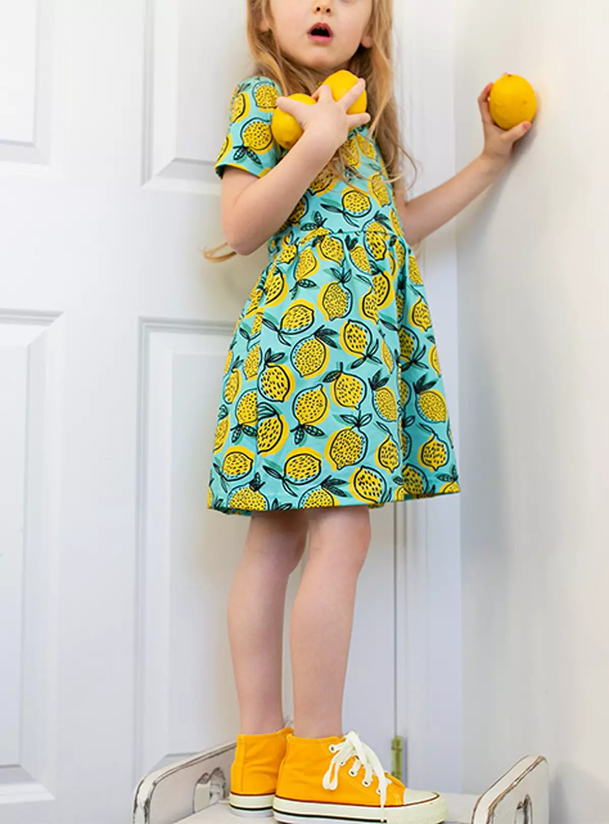 Fred & Noah dresses feature a short sleeve with a gathered waist creating a full skirt, perfect for twirling.