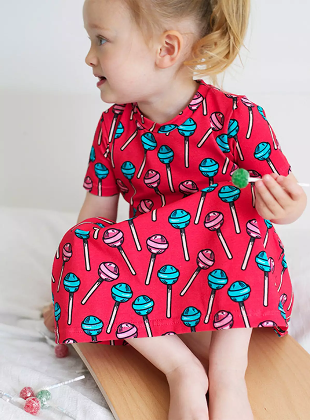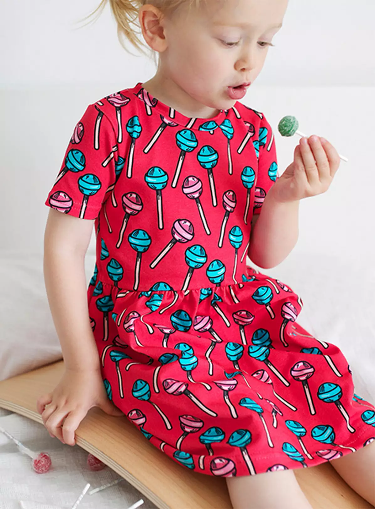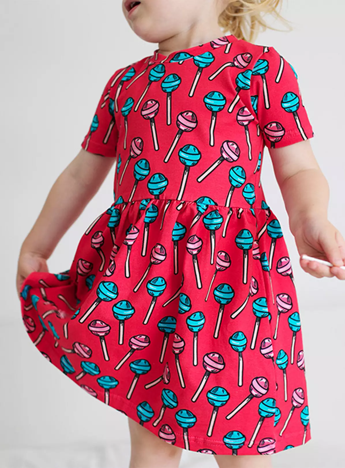 Fred & Noah dresses feature a short sleeve with a gathered waist creating a full skirt, perfect for twirling.