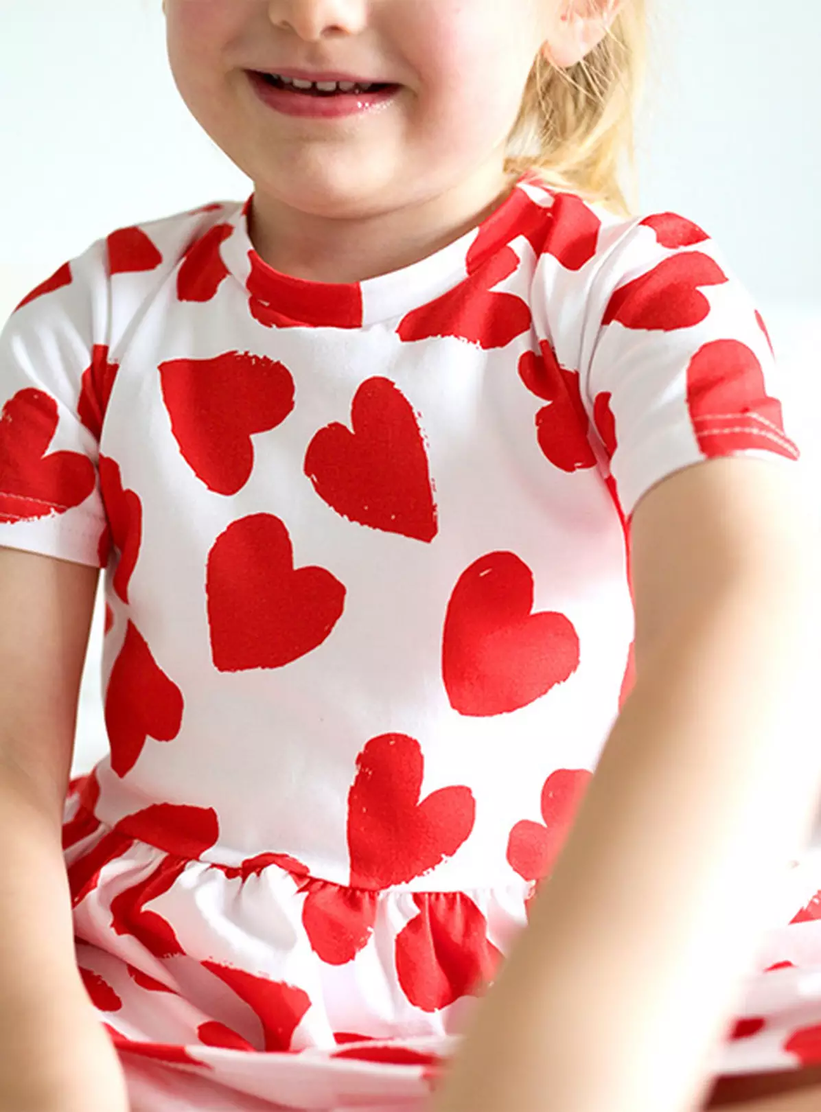 Fred & Noah dresses feature a short sleeve with a gathered waist creating a full skirt, perfect for twirling.