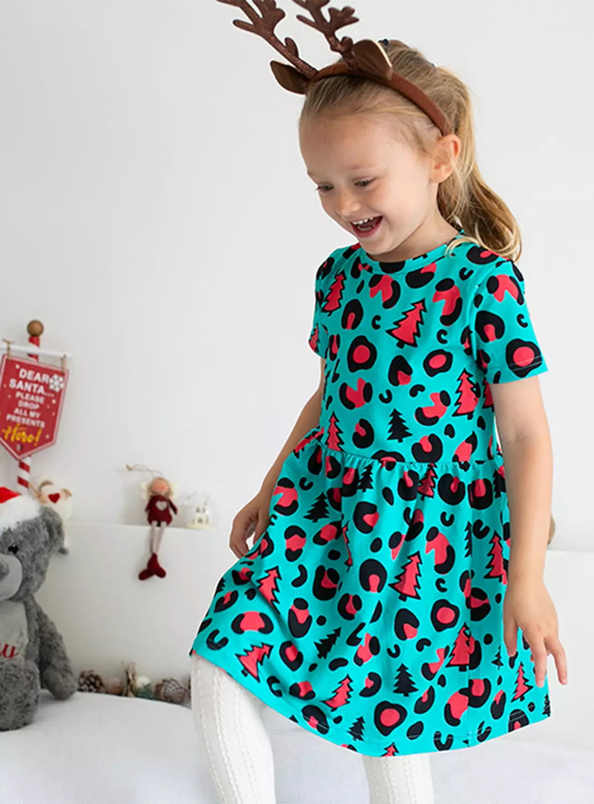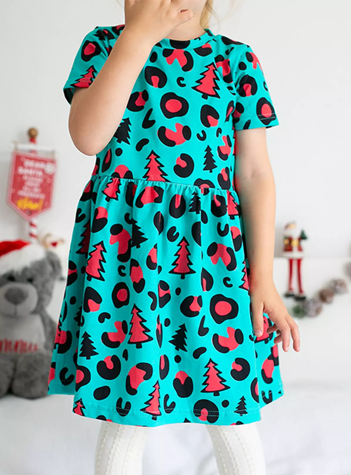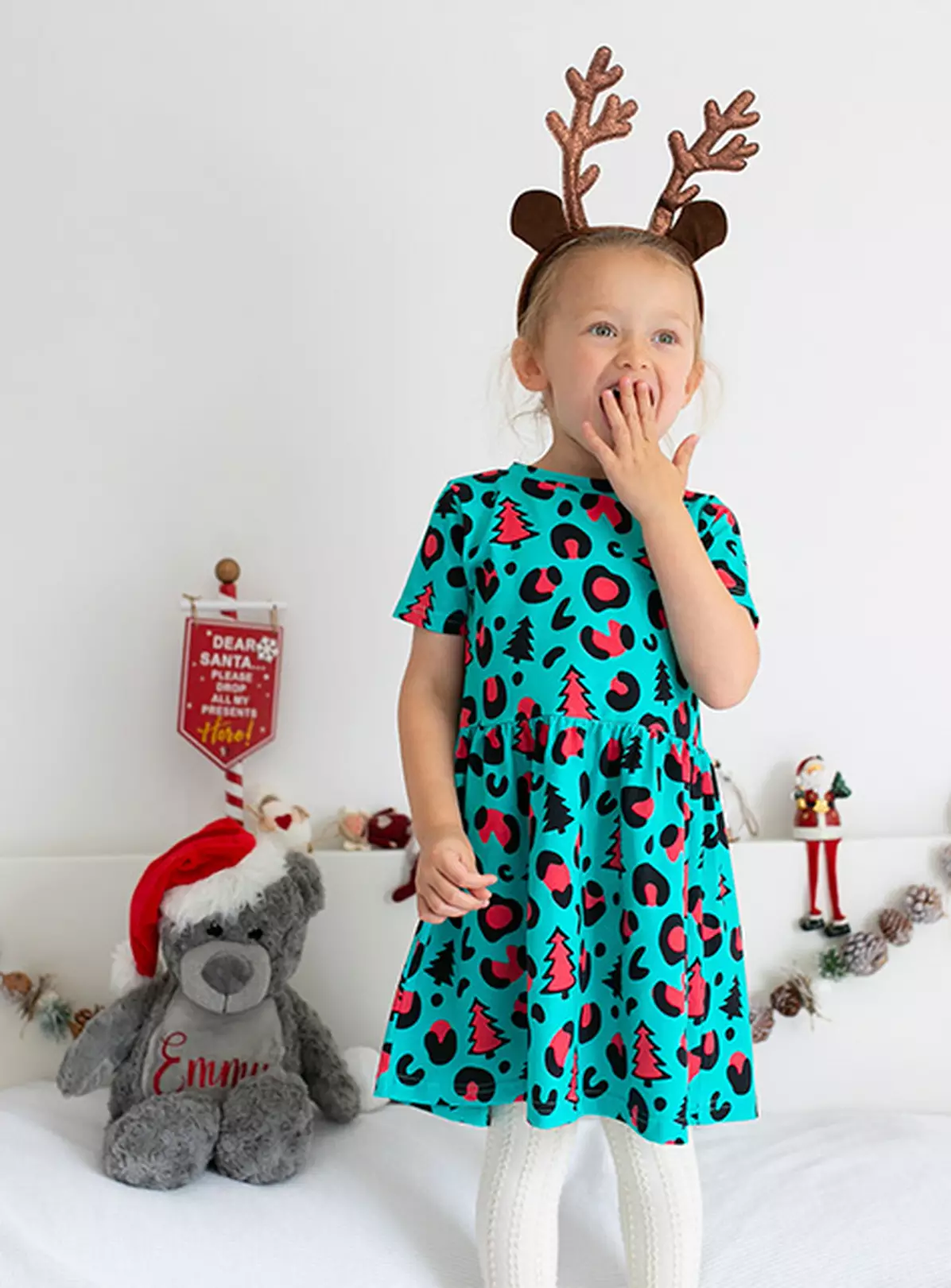 FRED & NOAH Xmas Trees Leopard Dress 2-3 Years