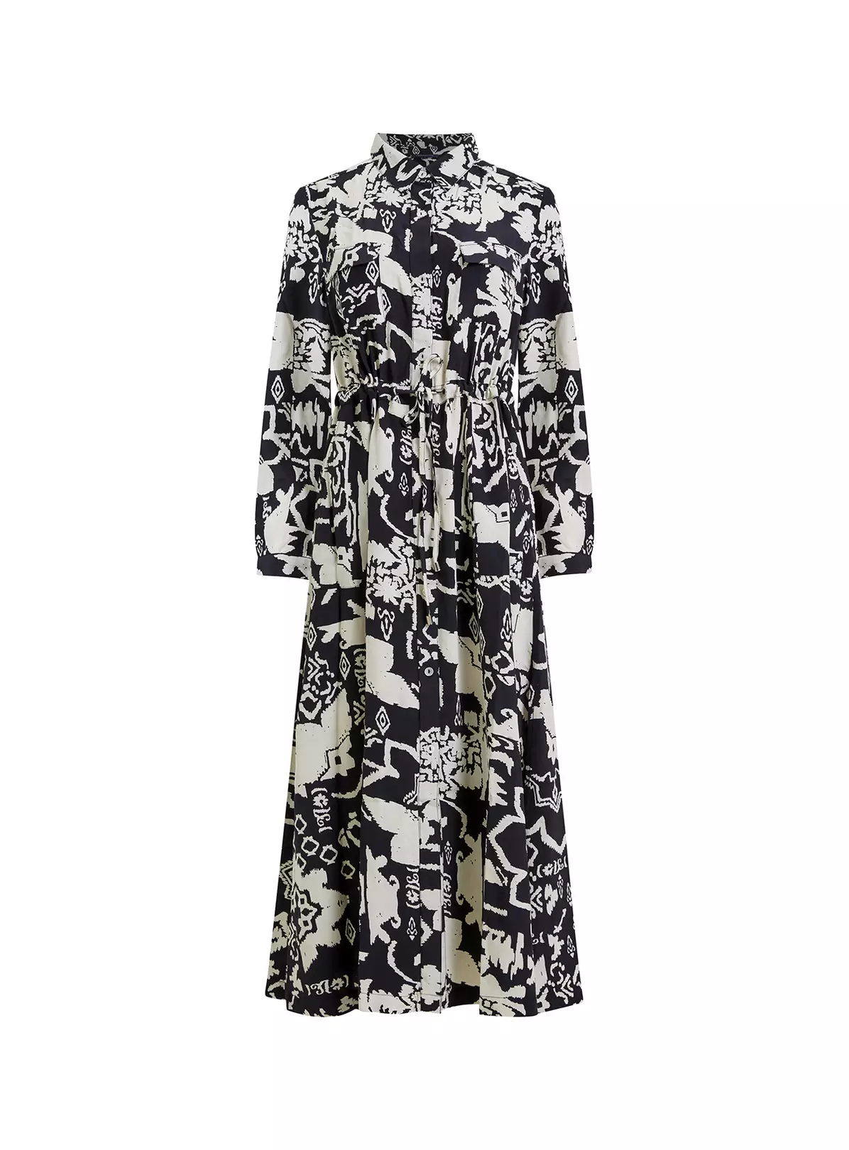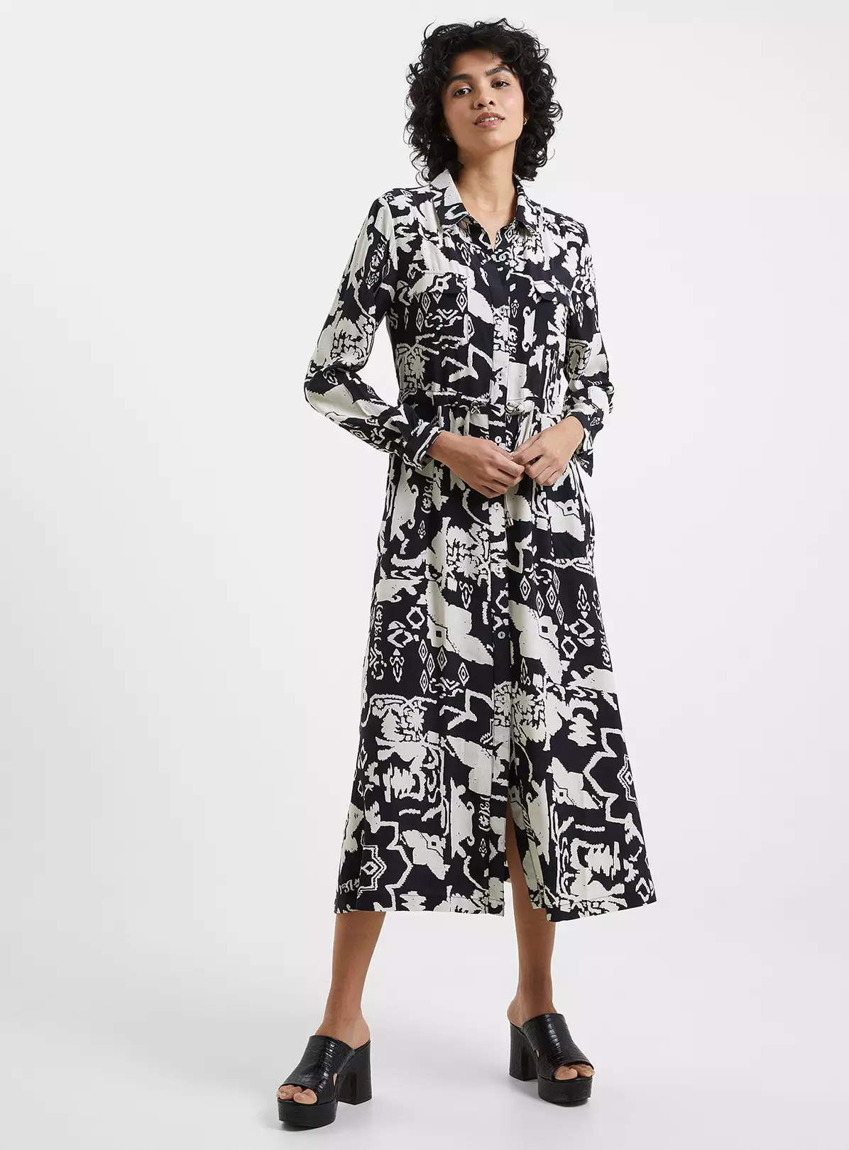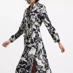 Revive your shirt dress collection with this moodboosting must-have. Our Deon Delph Drape Shirt Dress will brighten up your day and wardrobe alike, with an abstract monochrome print and refreshing take on the traditional shirt dress by pairing a collar and value-through fastening with a single leg split all tied together with a co-ordinating drawstring waist tie.