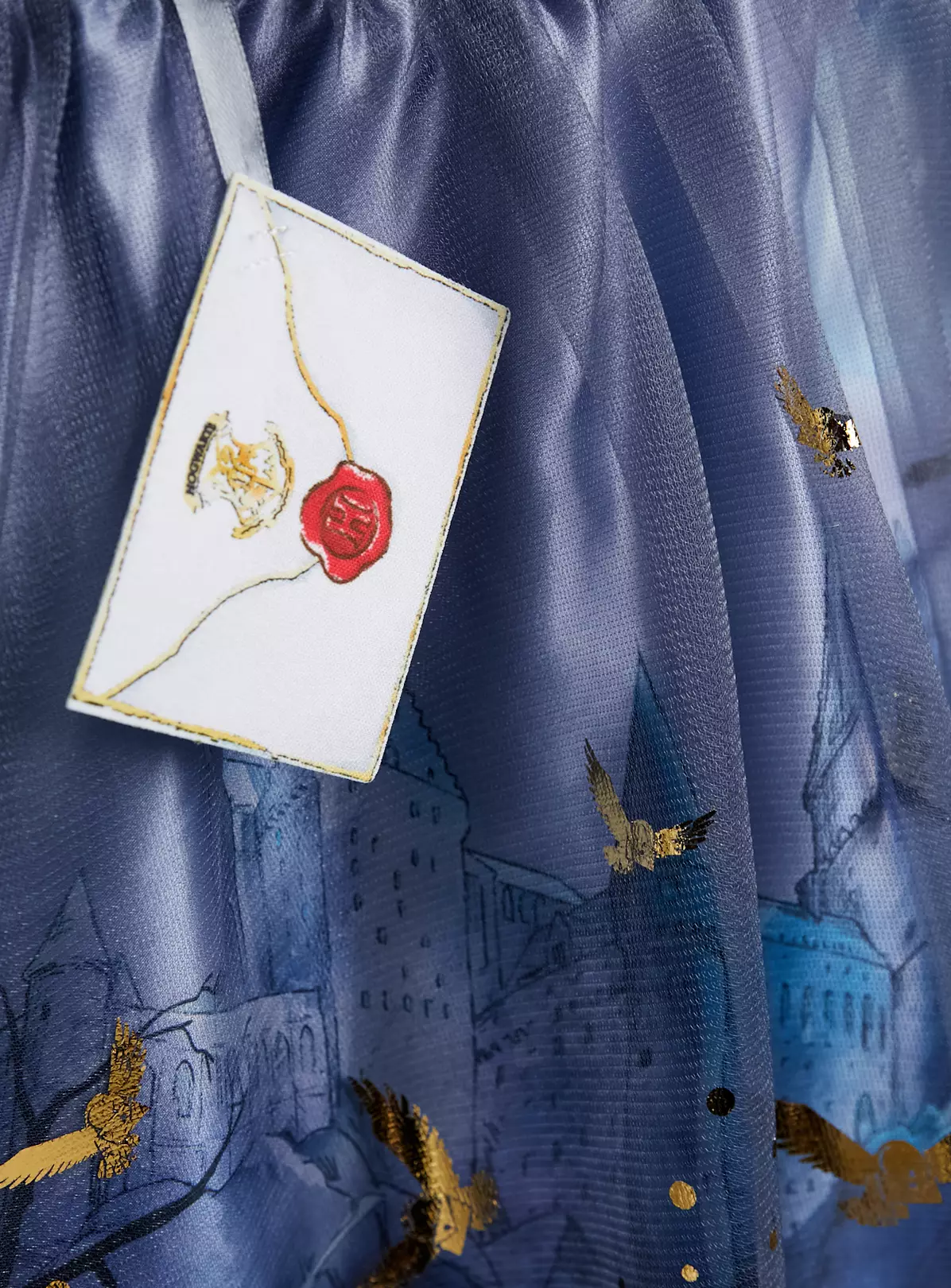 Give them a bit of Harry Potter magic with this wonderful Hogwarts dress set. In a dreamy shade of blue, it features a backdrop of the enchanting school with a sparkly tulle overlay and has a cute Peter Pan style collar and Hogwarts emblem. To top off the outfit, it comes with a quill pen prop for them to re-enact classroom antics in the school of magic.