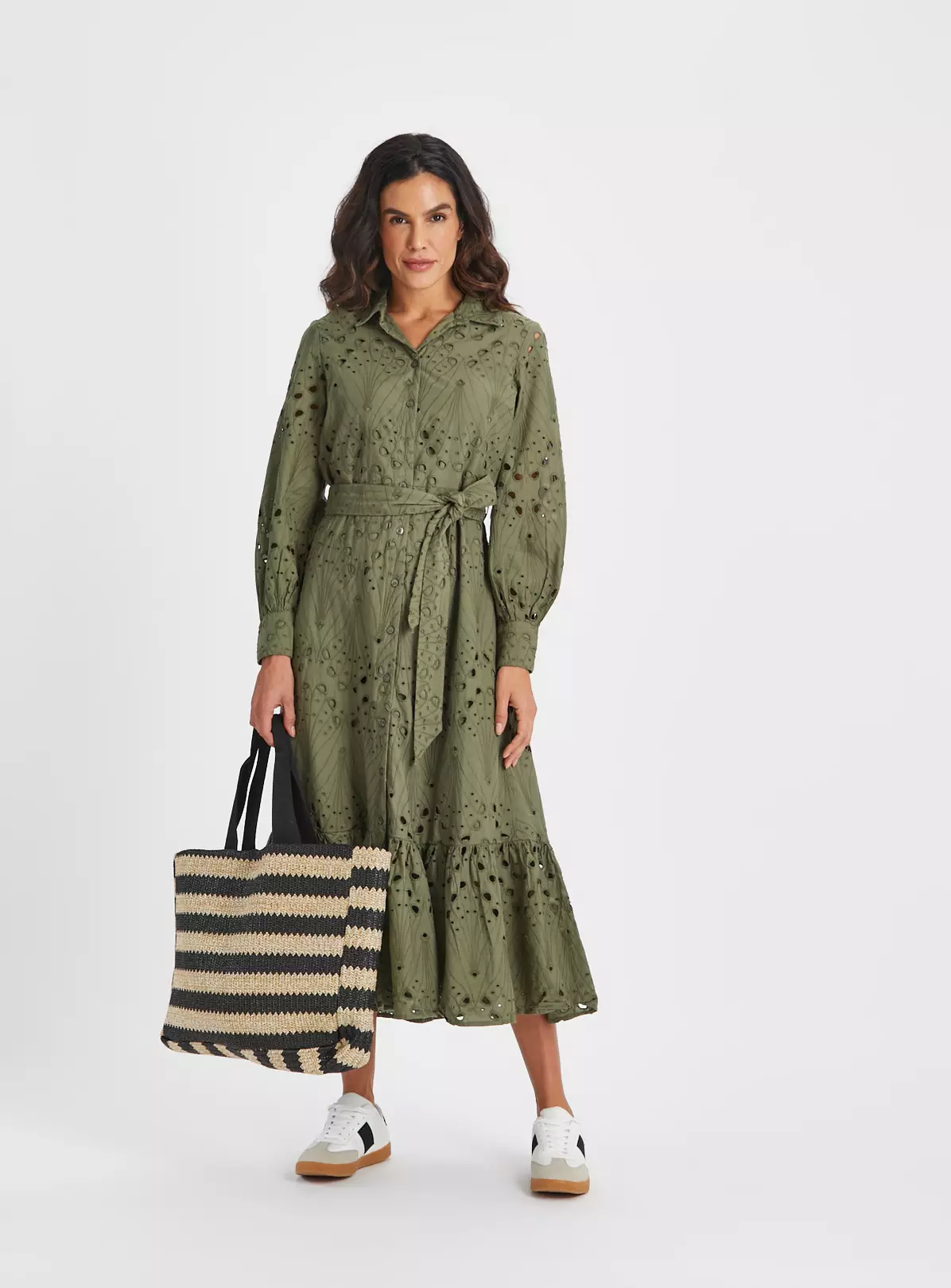 Be the first to review “Khaki Broderie Midi Shirt Dress 14” Cancel reply