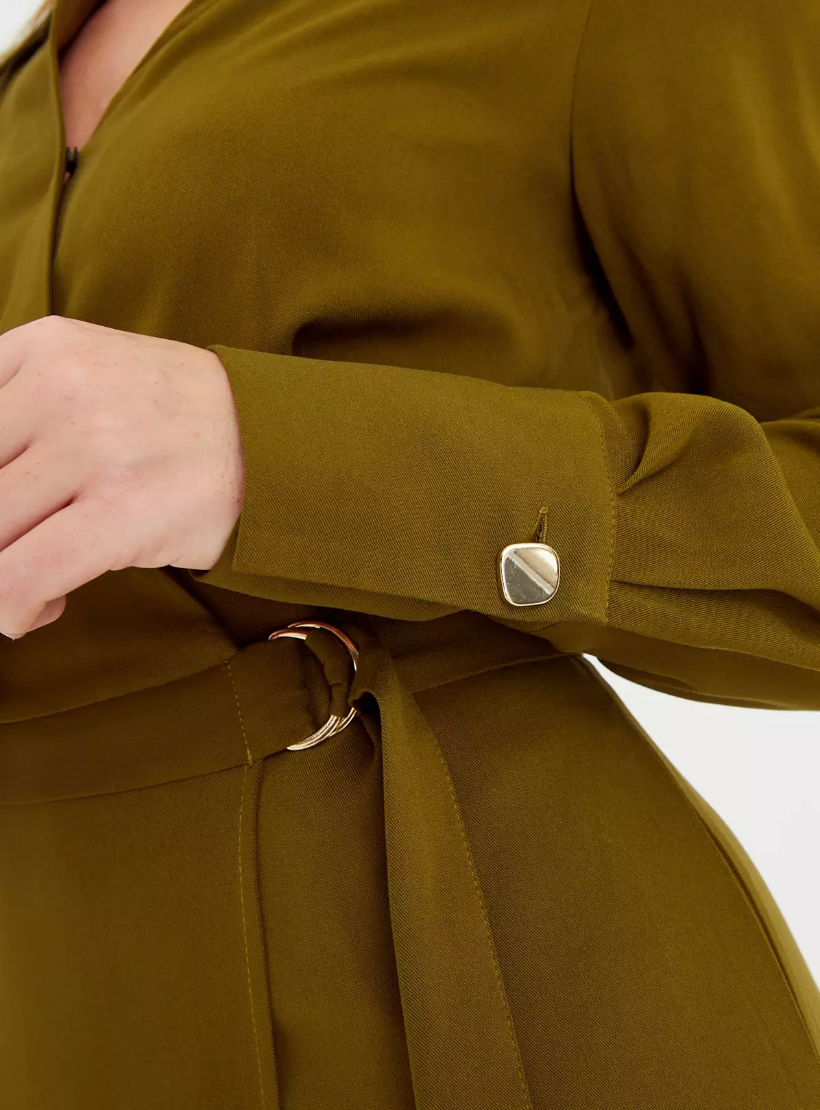 Make a statement in our khaki wrap midaxi dress. It’s elevated by a wrap over design with a stunning buckle detail. In an on-season shade of khaki green, it’s perfect for pairing with leather boots.