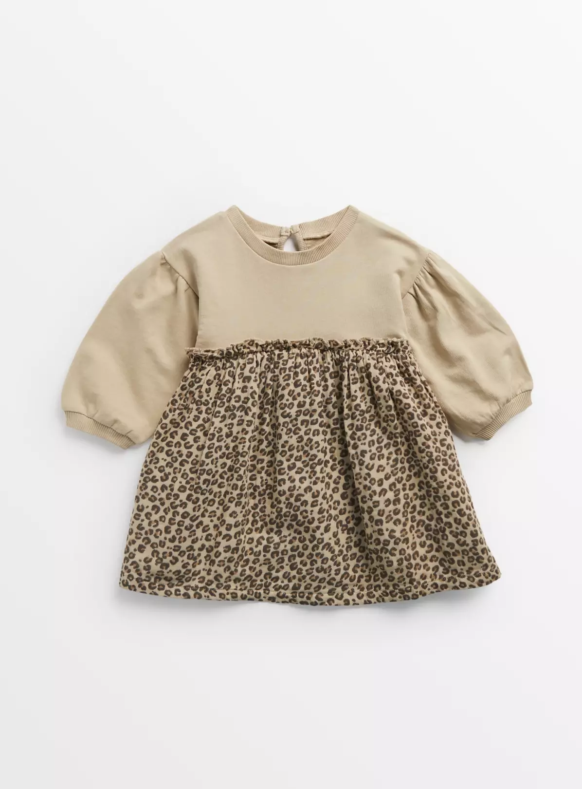 They’ll look a dream in our super cute twofer dress. With a crew neck and long sleeves, it features an oatmeal top section and a sweet leopard print skirt. Adorable!