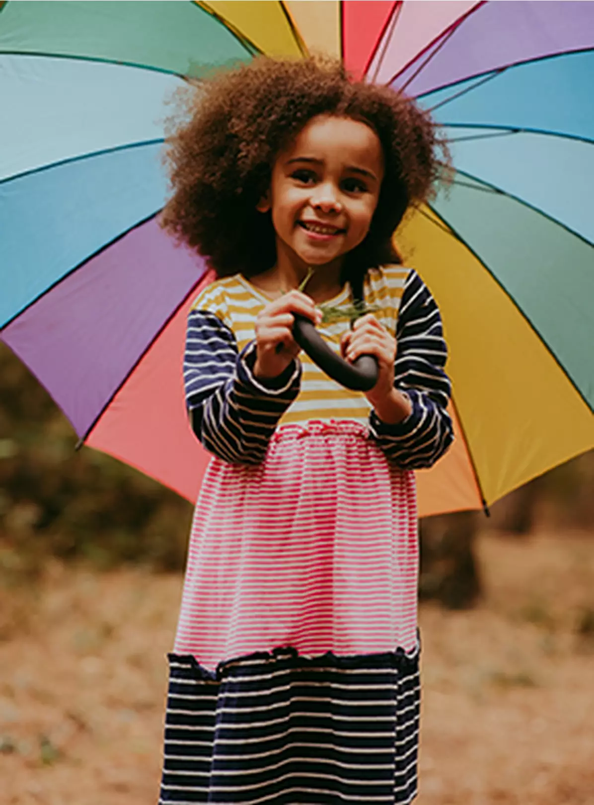 Our gorgeous contemporary tiered dress, made from our super-soft 100% GOTS certified organic cotton jersey fabric is perfect for endless twirls and all those special occasions and play! Designed with longevity & sustainability in mind, this long-sleeve childrens dress featuring our mix stripe print is non-seasonal and is kind to our environment. Pop on any of our playful socks or tights for a unique look.