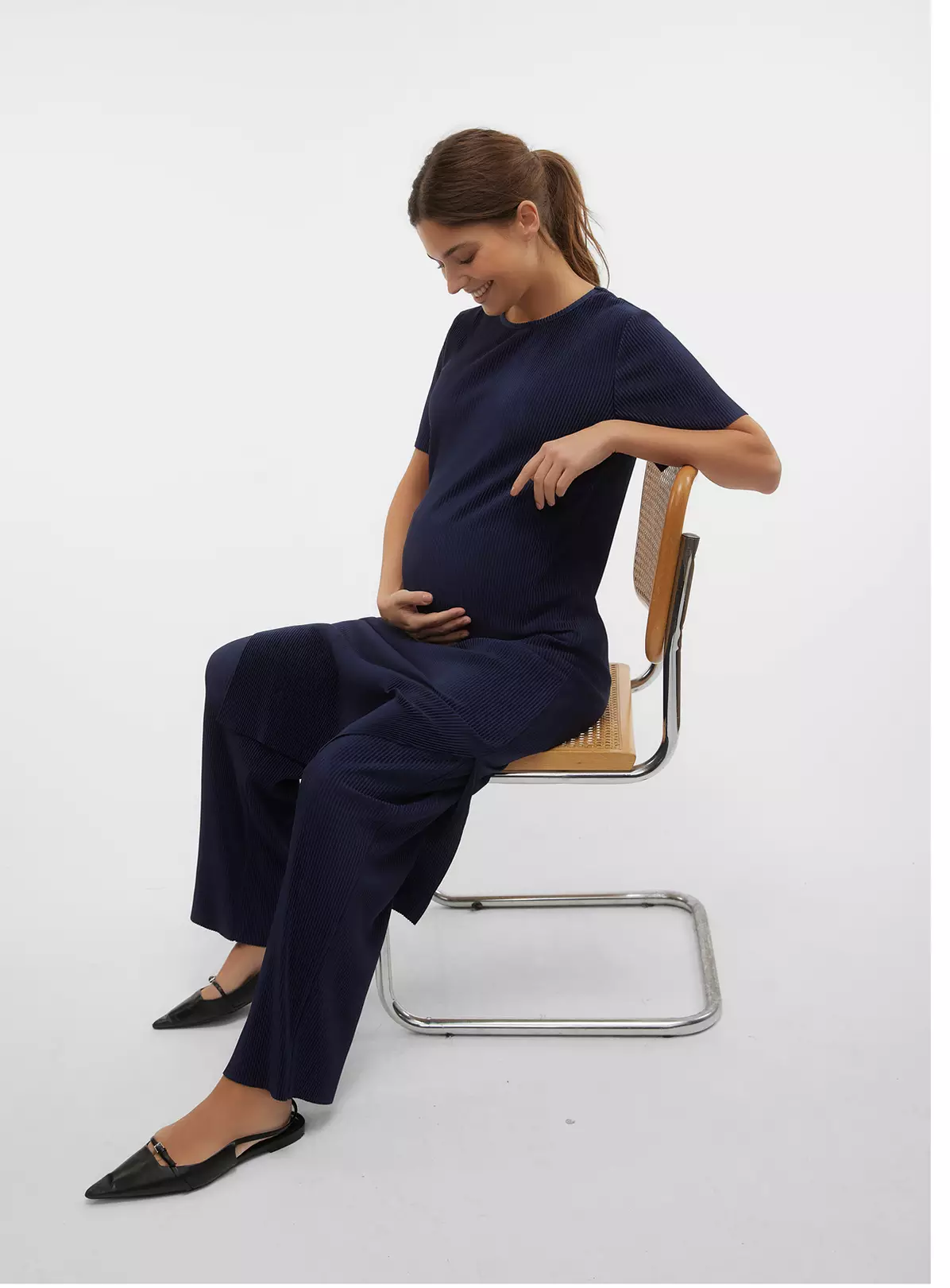 Midi length maternity dress with slits at both sides.