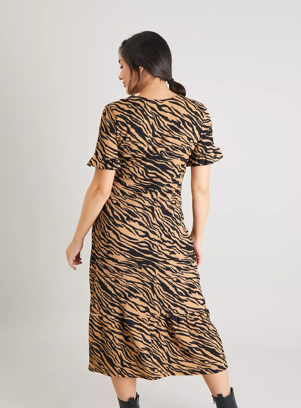 MATERNITY Brown Zebra Print Crinkle Midi Dress – 8