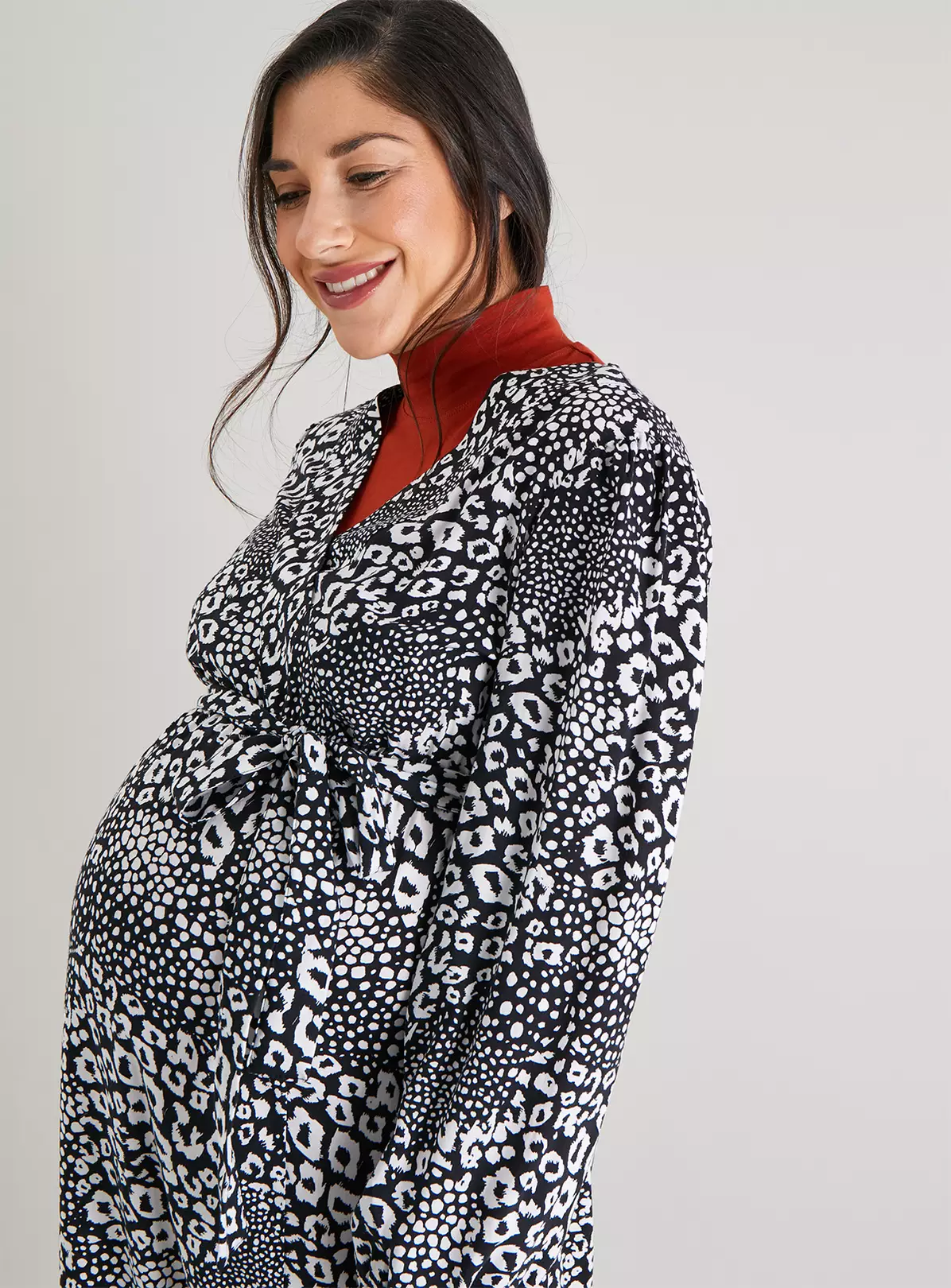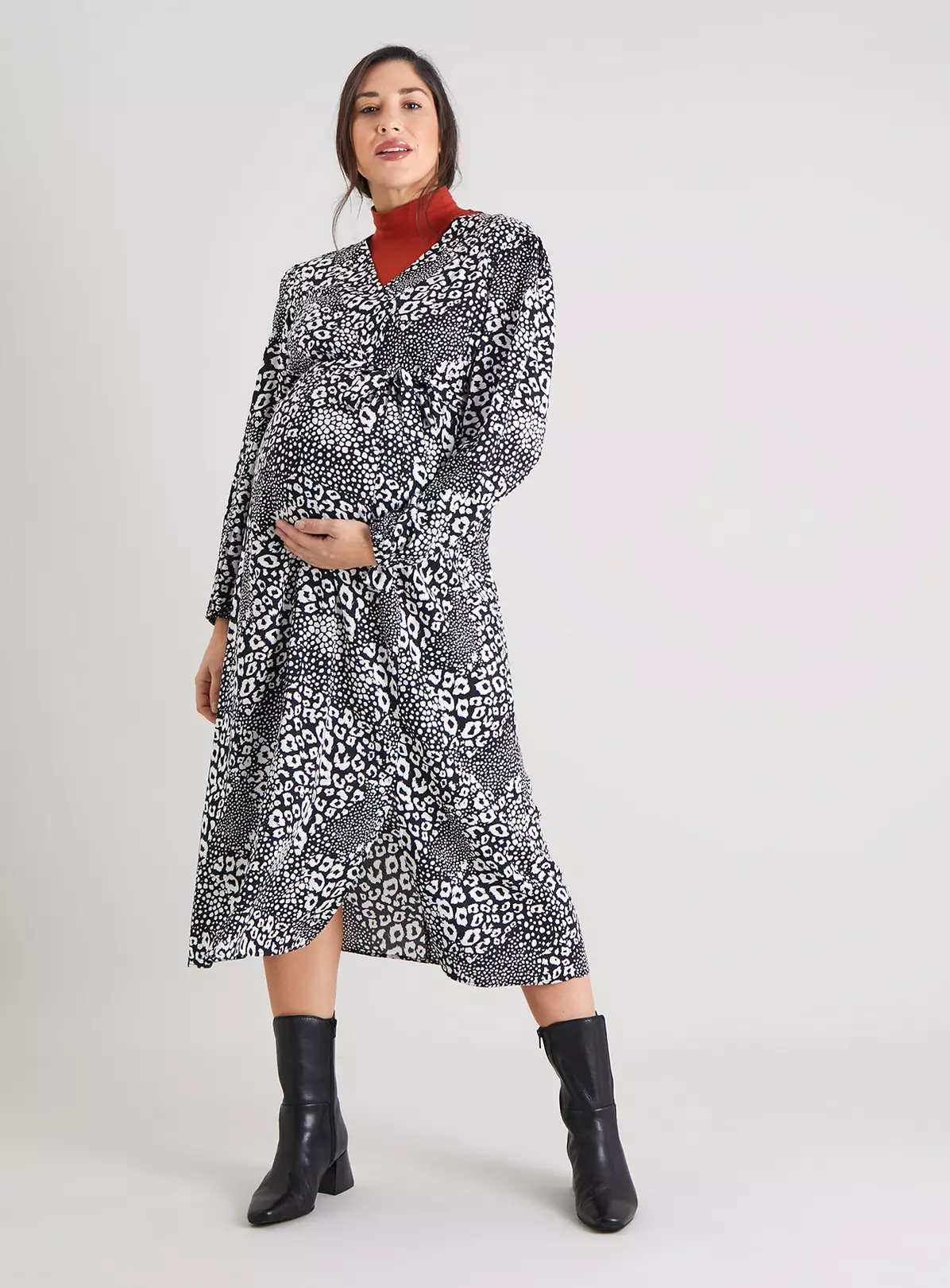 In a flattering wrap style, this long sleeved dress from the Tu Maternity collection is a must-have style for your growing wardrobe (and bump!). Team with trainers and layer with a denim jacket for the head to toe look.